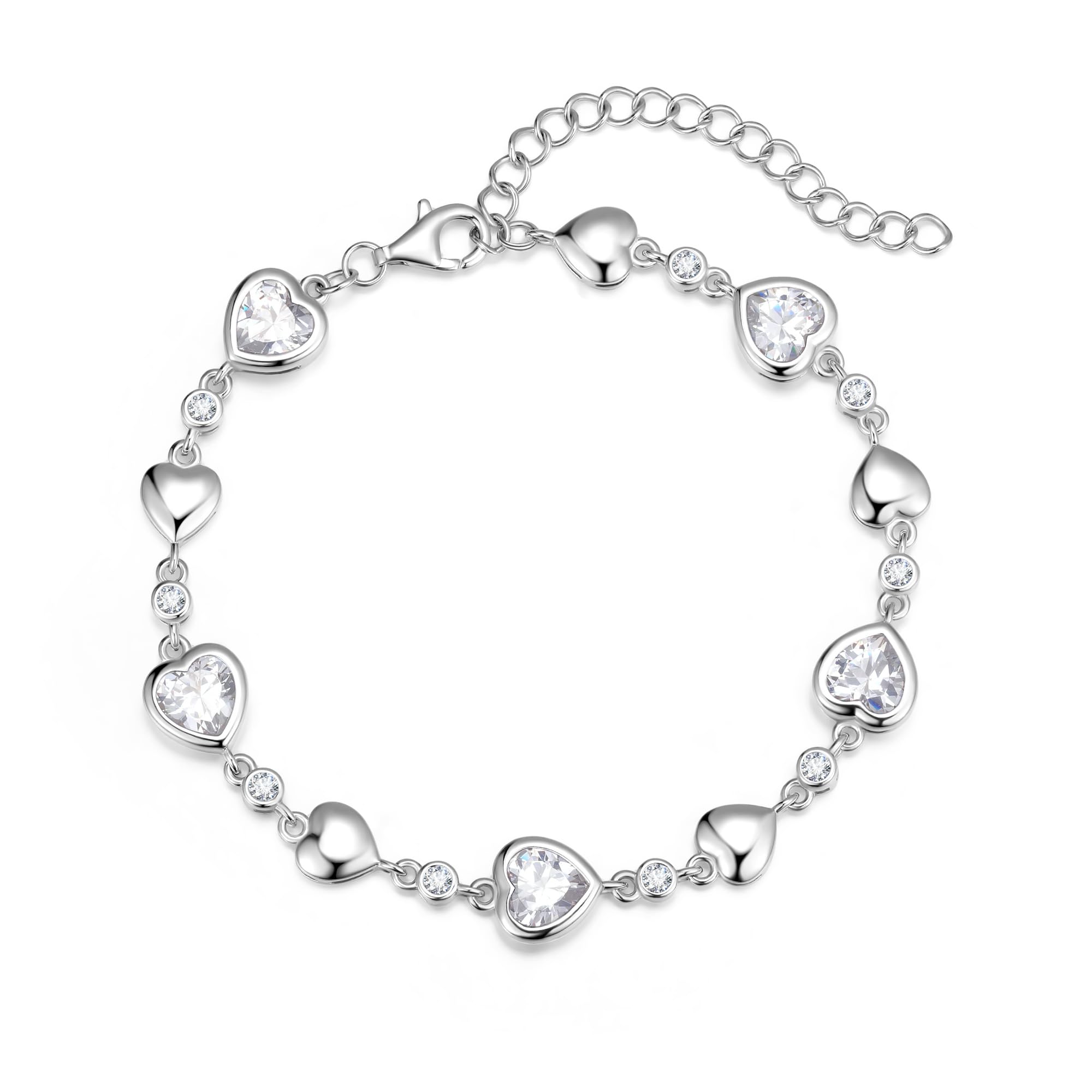 Carleen Birthstone Bracelets for Women 925 Sterling Silver Five Heart Station Created Gemstone Tennis Bracelet Jewelry Anniversary Birthday for Wife,