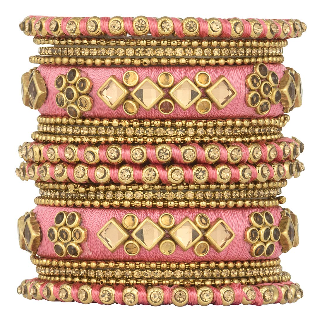Aheli Ethnic Handmade Silk Thread Faux Stone Studded Bangle Set Chuda Indian Wedding Wear Fashion Jewelry Gift for Women Light Pink