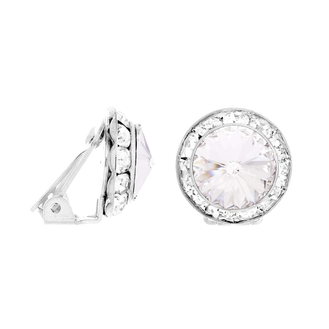 Rosemarie & Jubalee Women's Timeless Classic Statement Clip On Halo Earrings Made With Premium Crystals