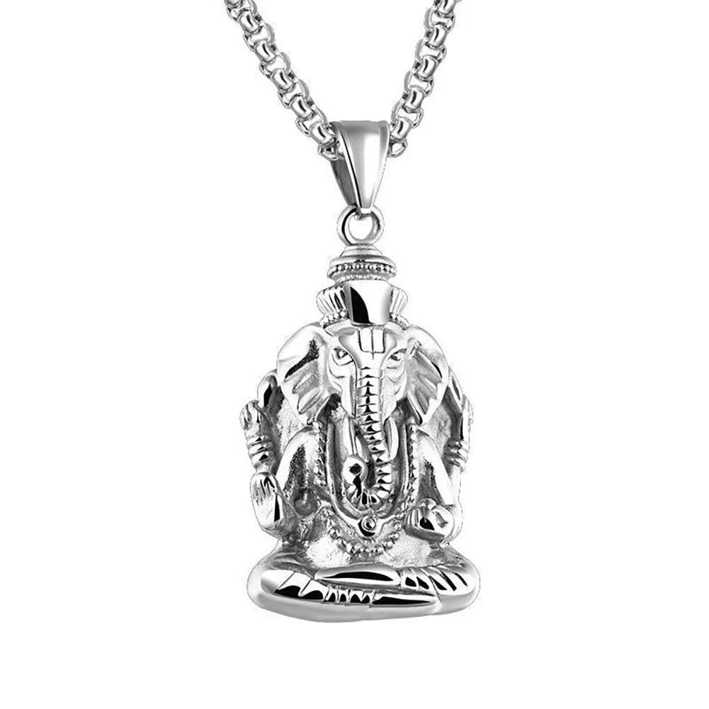 Renning Stainless Steel Hindu Lord Ganesh Ganesha Elephant Necklace, God of Fortune Pendant Good Luck for Men Women