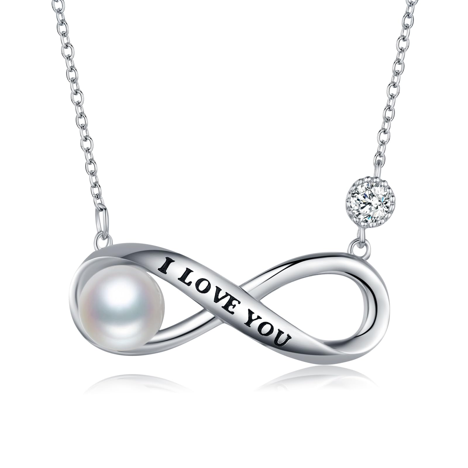 Design: They say time takes away everything, but the eternal love between lovers, family and friends will last forever. This necklace will send a powerful message to the one you love: I will love you until the end of time Details: Infinity Pearl Necklace is made of 925 sterling silver, set with a si