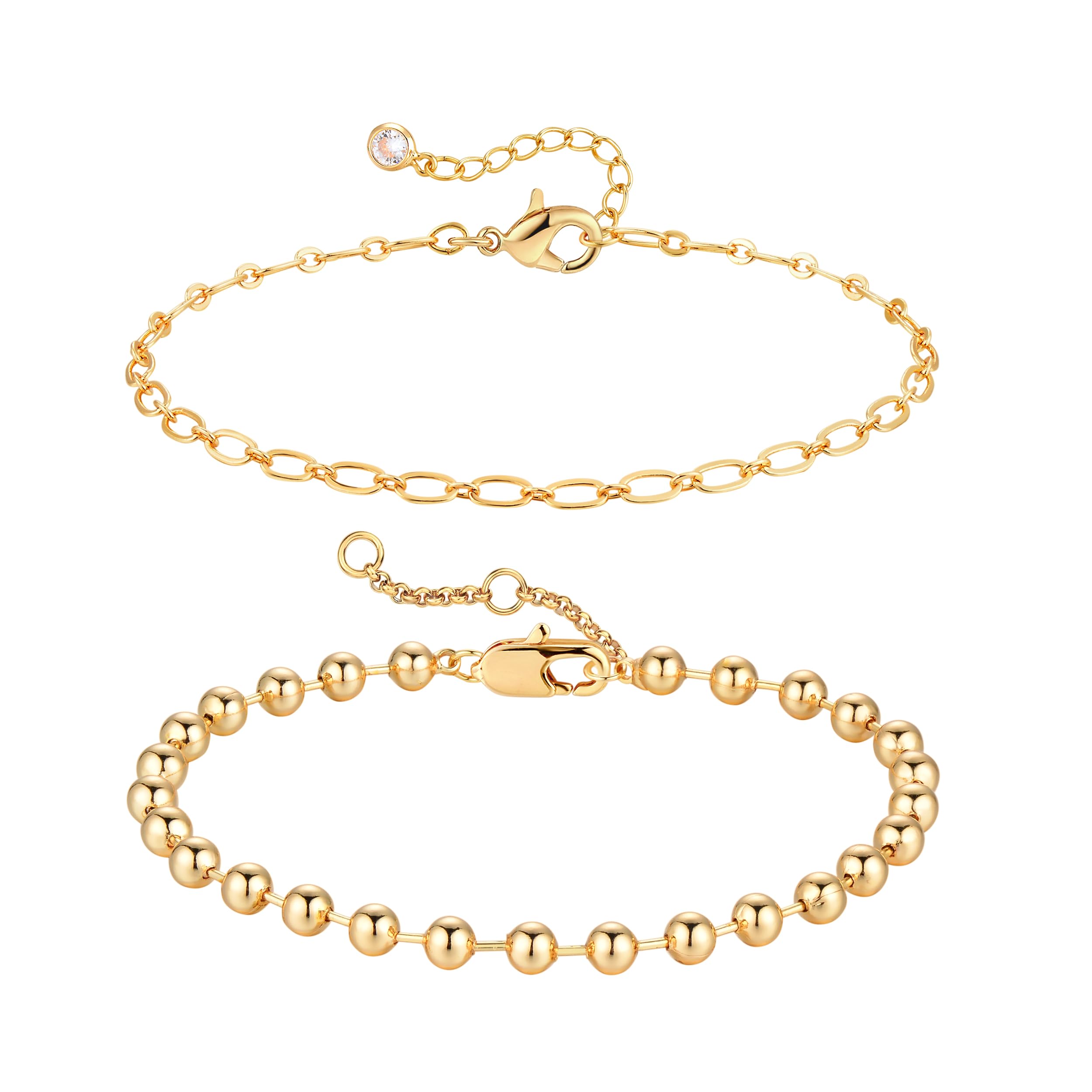 Size Guide: Please check this first! The gold ball bracelet is 6.69"+0.79", and the gold paperclip link chain bracelet is 6.1" + 0.98" extender chain, flexible and considerate design, easy for us to adjust the length and wear them by yourself Premium Material: The jewelry in TONTMY are all 14K real