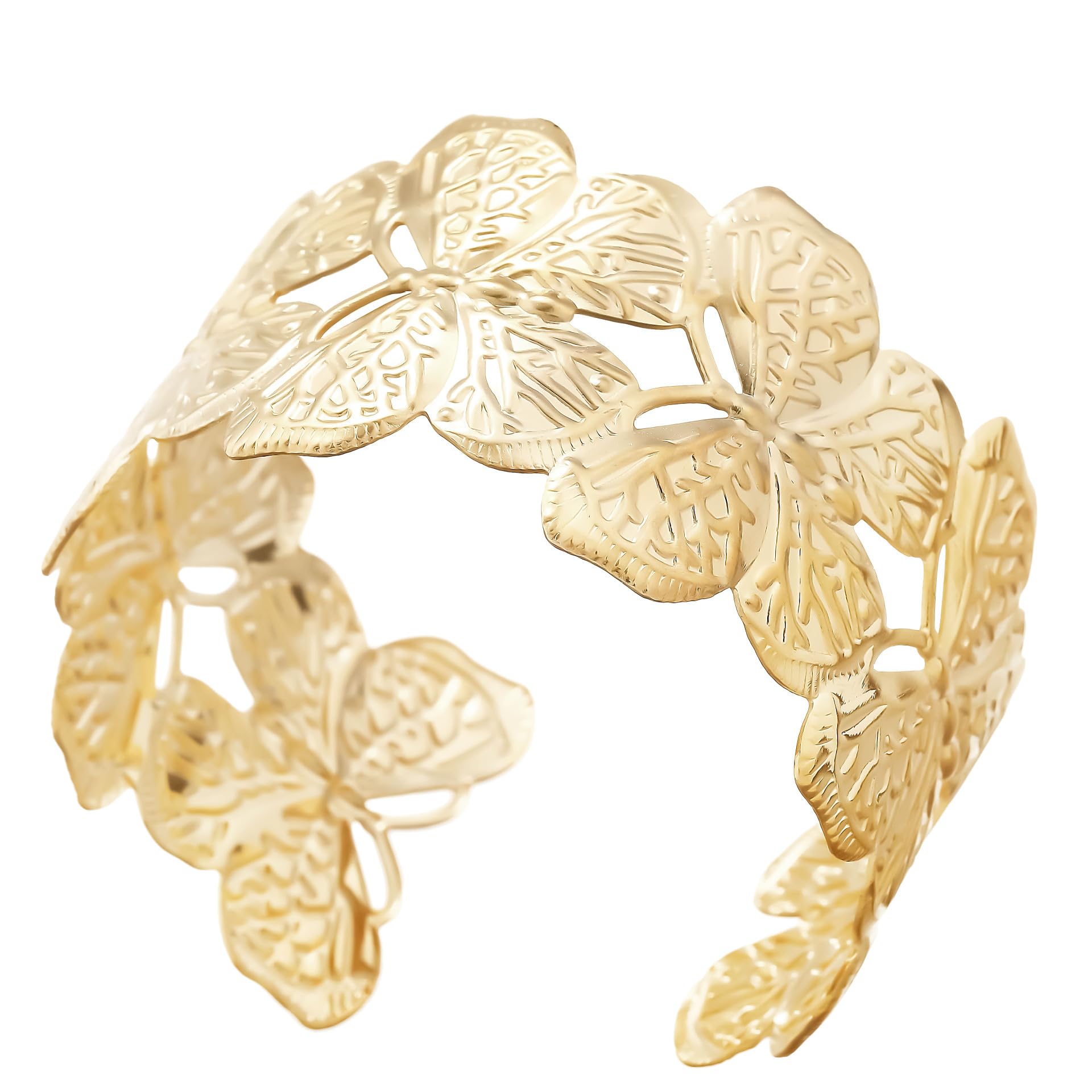 Butterfly Cuff Bracelet for Women: This exquisite arm cuff features horizontally aligned butterfly motifs in luxurious gold finish. Crafted with high-quality gold-plated metal and anti-tarnish coating, it's perfect for women seeking elegant nature-inspired jewelry Adjustable Butterfly Cuff: Easily c