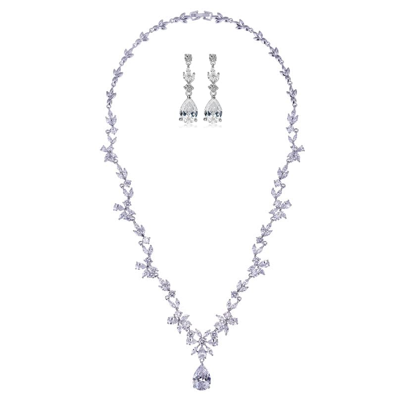 【Luxury Design】Gorgeous necklace and drop earrings make up this exquisite jewelry set, set with natural crystals and sparkling moissanite, it is the most suitable jewelry set for wedding and engagement occasions. 【High Quality Material】14k White Gold, High Hardness Moissanite and Natural Cry