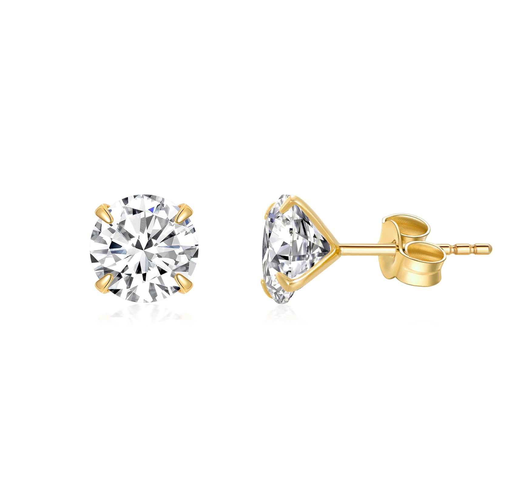 14K Solid Gold Birthstone Stud Earrings for Women, Yellow Gold Classic 4-Prong Set Brillant Round Cut Simulated Diamond Stud Earrings Women Jewelry