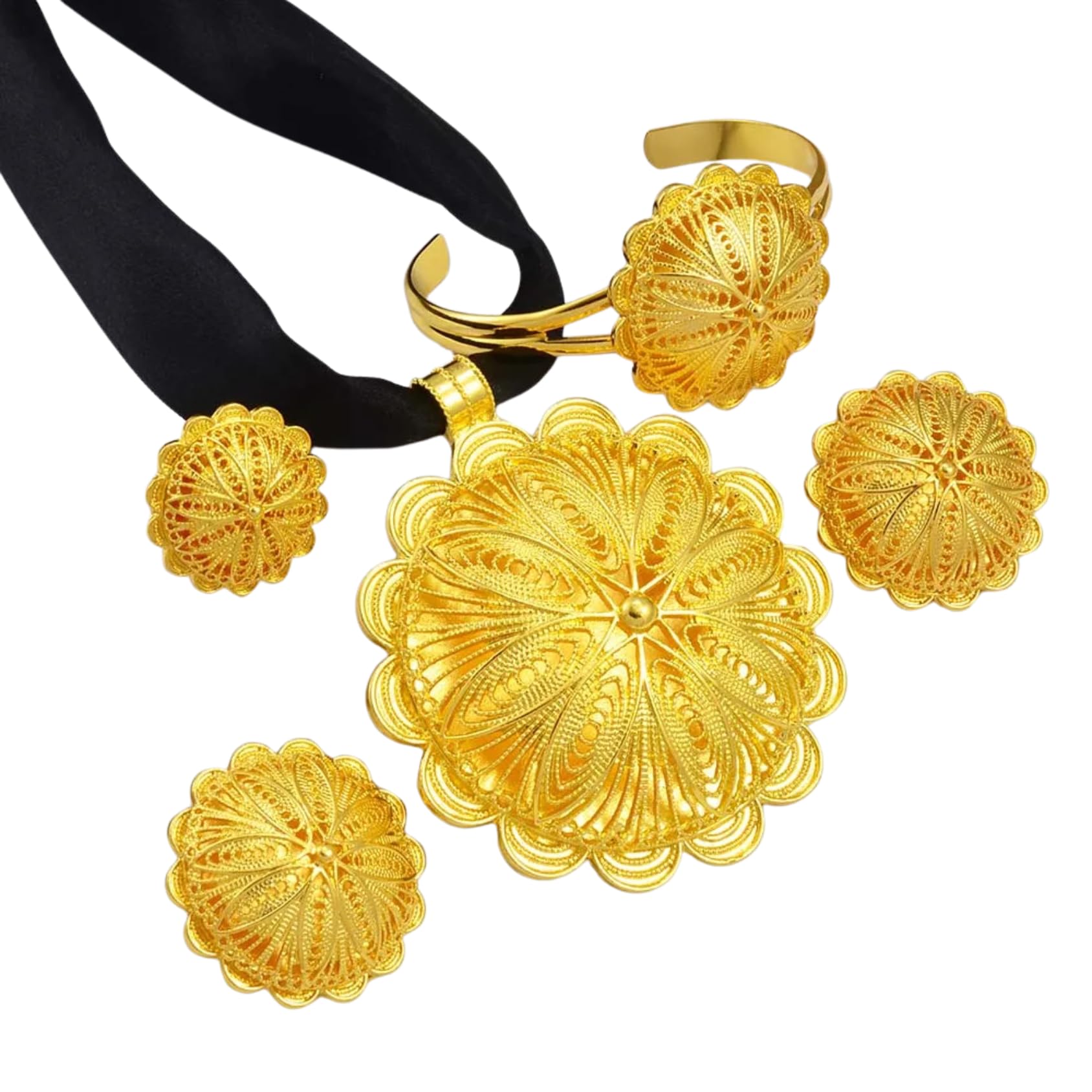 N-Made Beautifull Big Ethiopian Jewelry - Ethiopian Jewelry for Women Set - Big Pendant Necklace Earrings Bracelet Ring African Ethiopian Jewelry Sets