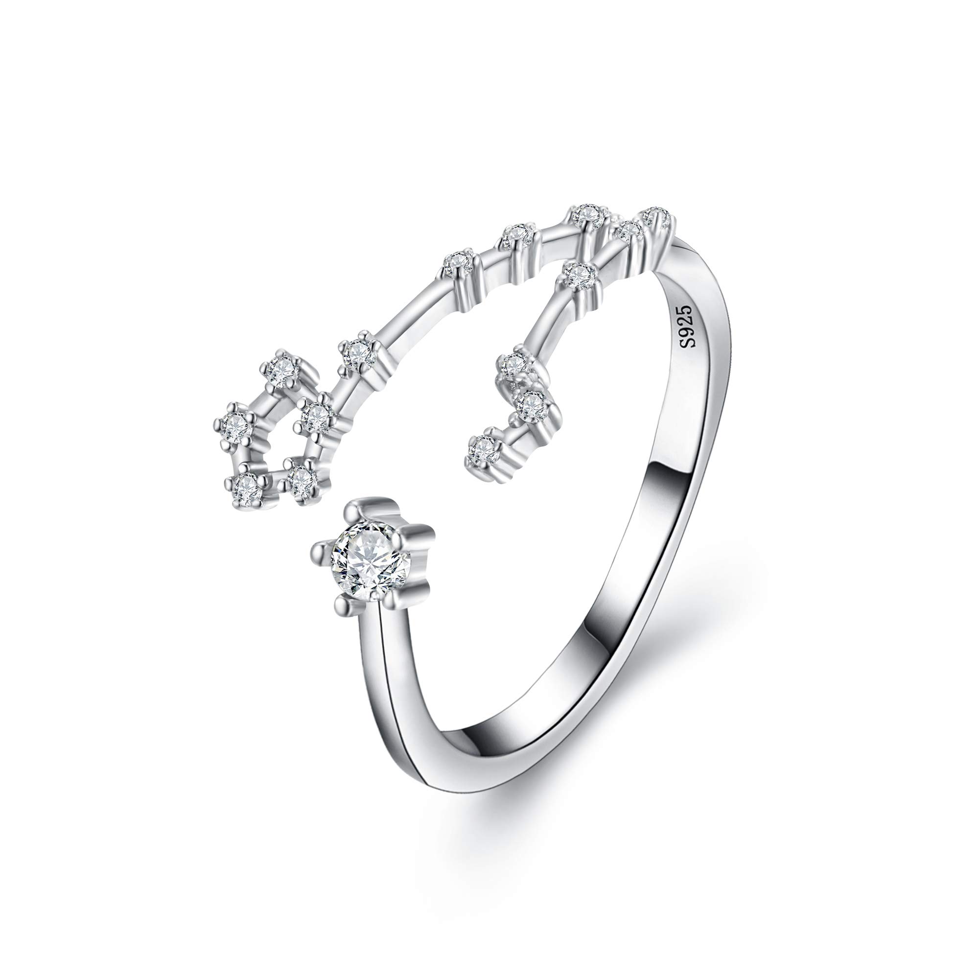 BriLove 925 Sterling Silver CZ Statement Ring Horoscope Zodiac 12 Constellation Astrology Adjustable Rings for Mom Women Mothers Day/Valentines Day/