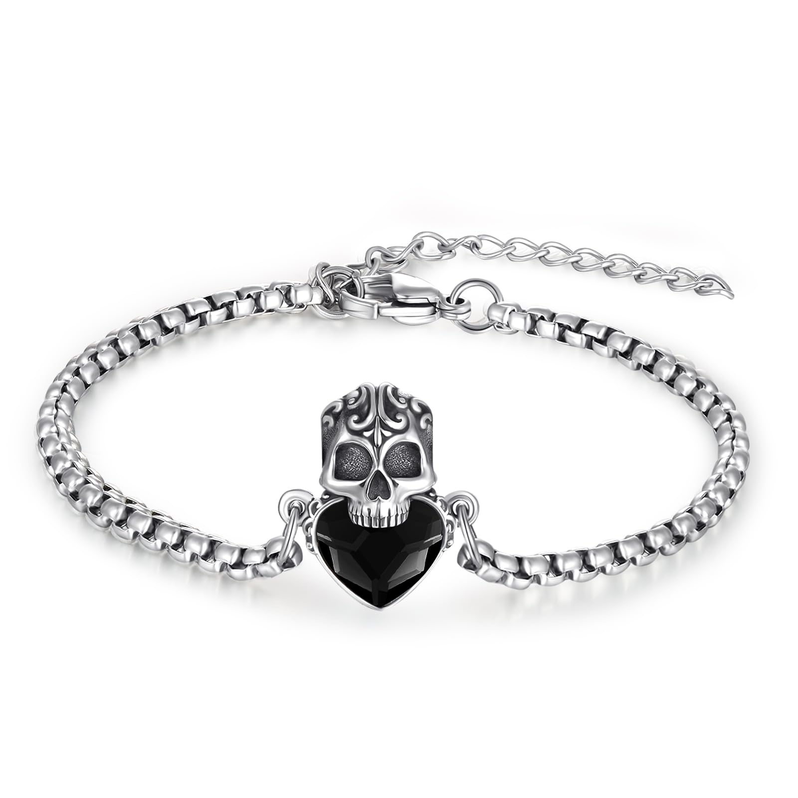 Silikepa Skull Bracelet 925 Sterling Silver Skull Crystal Bracelet Adjustable Bracelet Gothic Bracelet Skull Jewelry Gift for Women Men