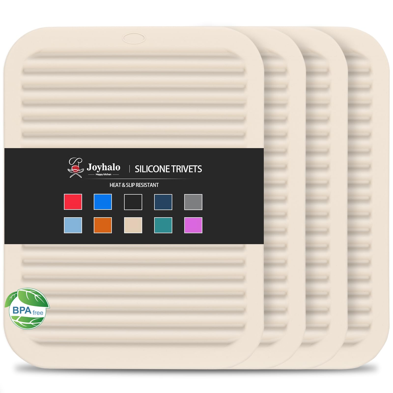 Joyhalo 4 Pack Silicone Trivets for Hot Pots and Pans,480℉ Heat Resistant Trivets for Hot Dishes,Hot Pads for Countertop,Kitchen Potholders,Khaki