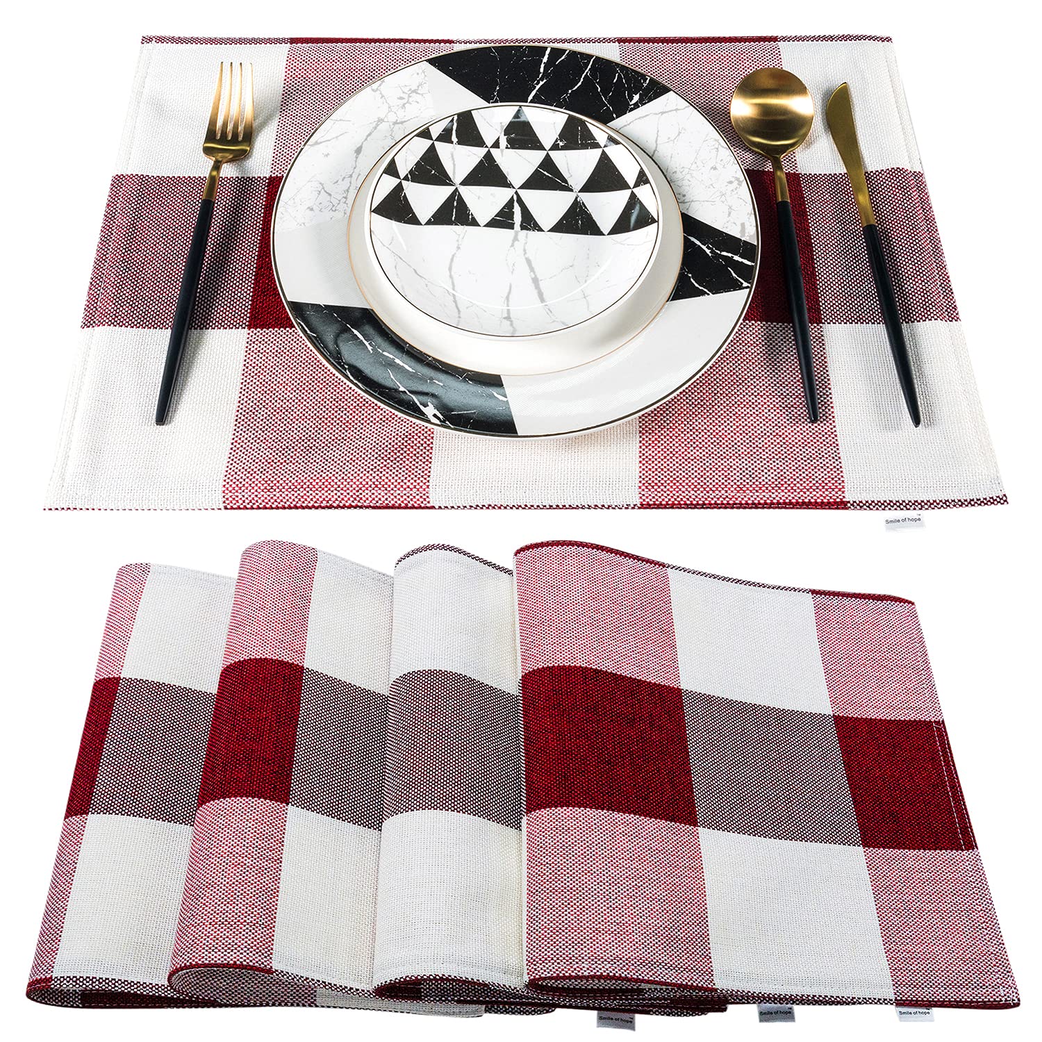 Smile of hope Red Placemats Set of 4, Linen Buffalo Plaid Double Layer Spring Placemats Check Kitchen Table Mats,Waterproof Heat Resistant Durable