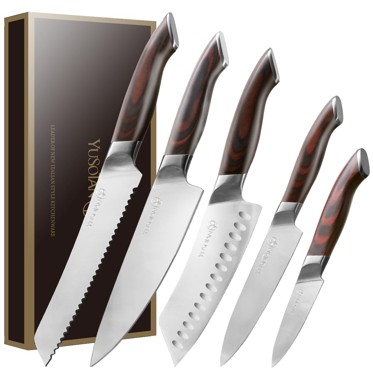 YUSOTAN 5-Piece Knife Set Professional Kitchen Knife Set Ultra Sharp High Carbon Stainless Steel Chef Knife Set for Kitchen Japanese Cooking Knife