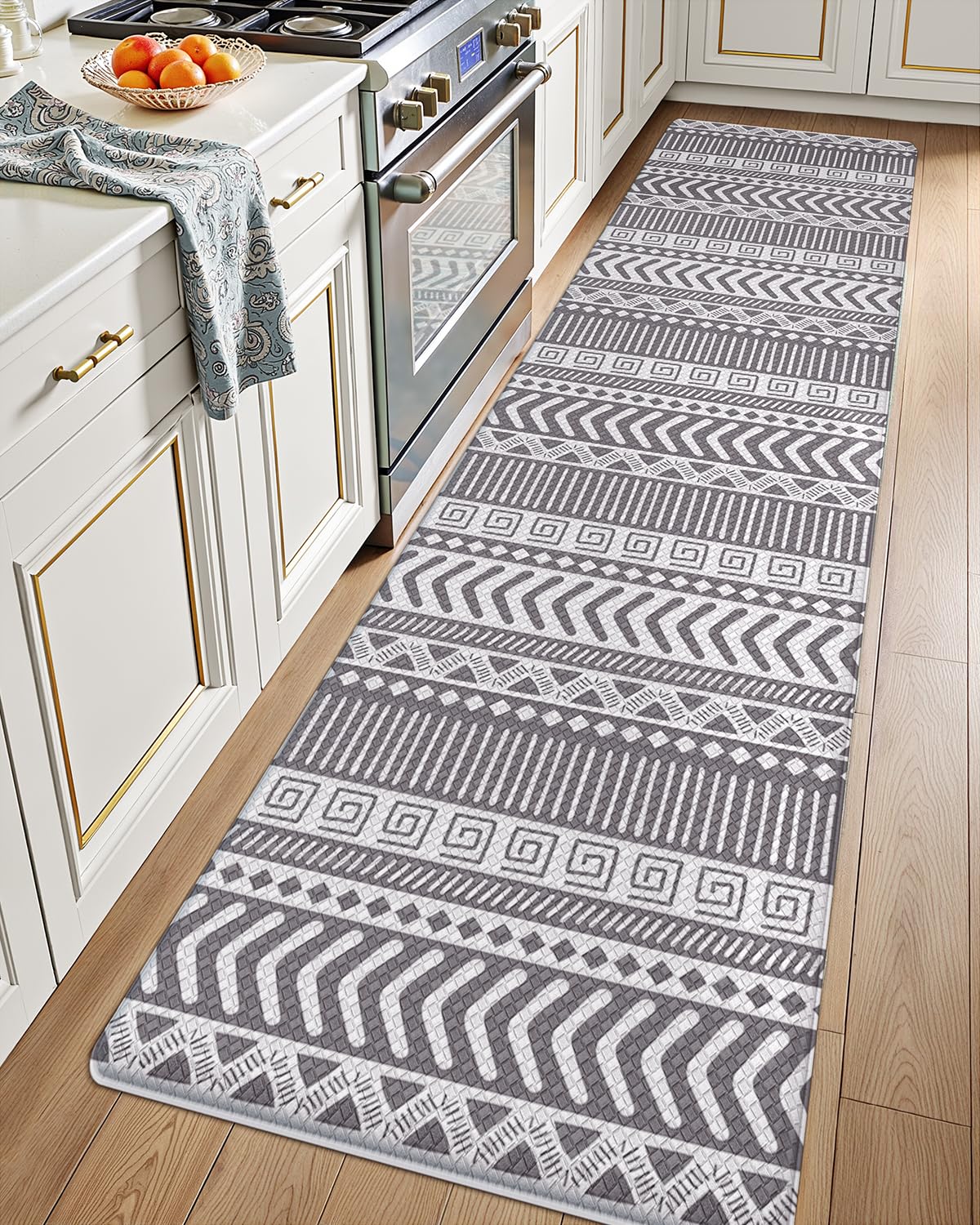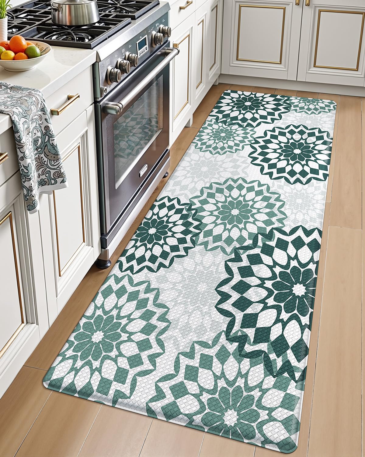 Non Slip Kitchen Rug: The kitchen mat with non-slip rubber backing has great grip effect, which ensures that kitchen rug stays firmly in place.The kitchen floor mat can provide safety for your family and eliminate any concerns about slipping or shifting.[Notice]Make sure the floor is clean and dry b