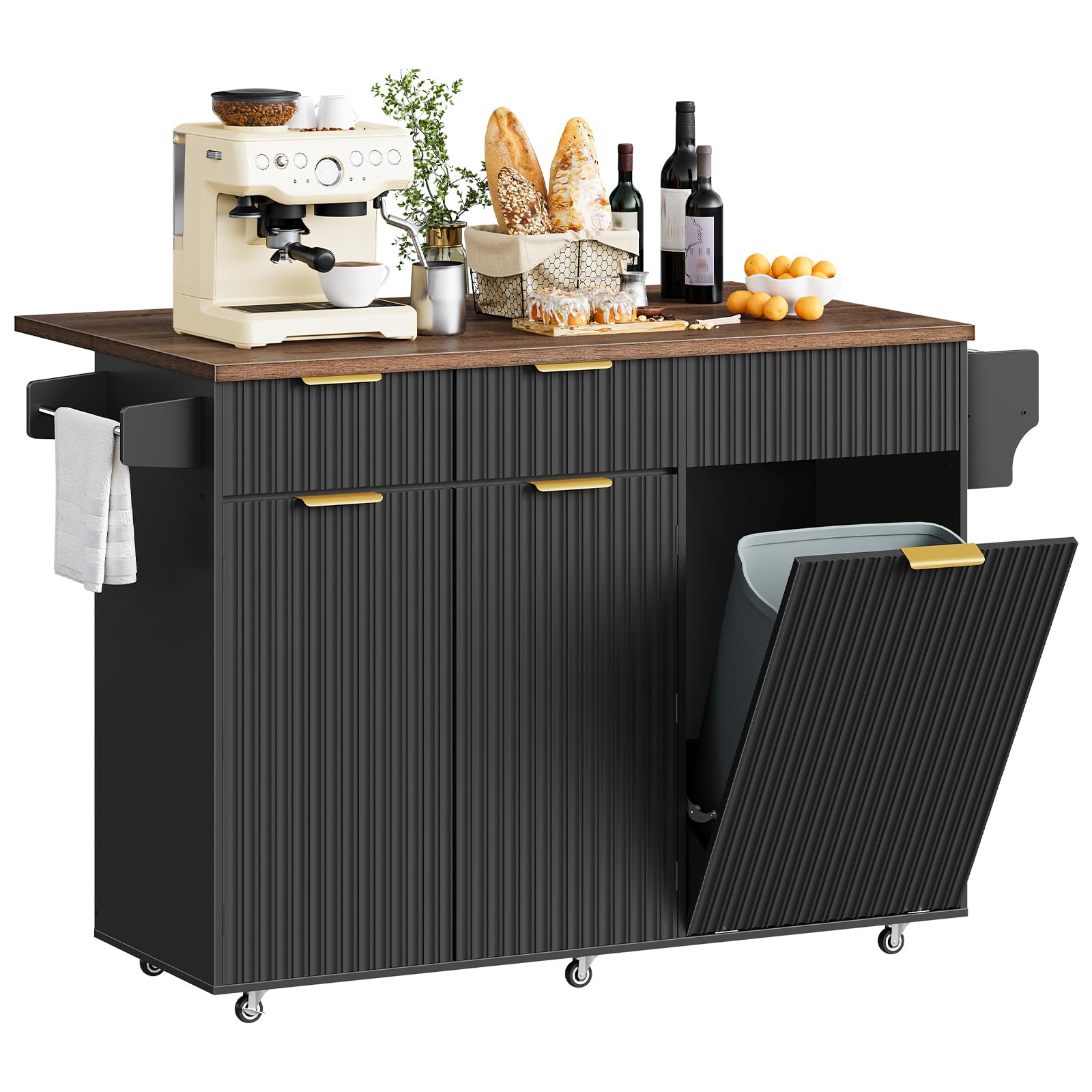 CHOEZON Mobile Kitchen Island with Folding Drop Leaf Countertop, Rolling Kitchen Island Cart with Trash Can Storage, Drawers, Adjustable Shelf, Spice