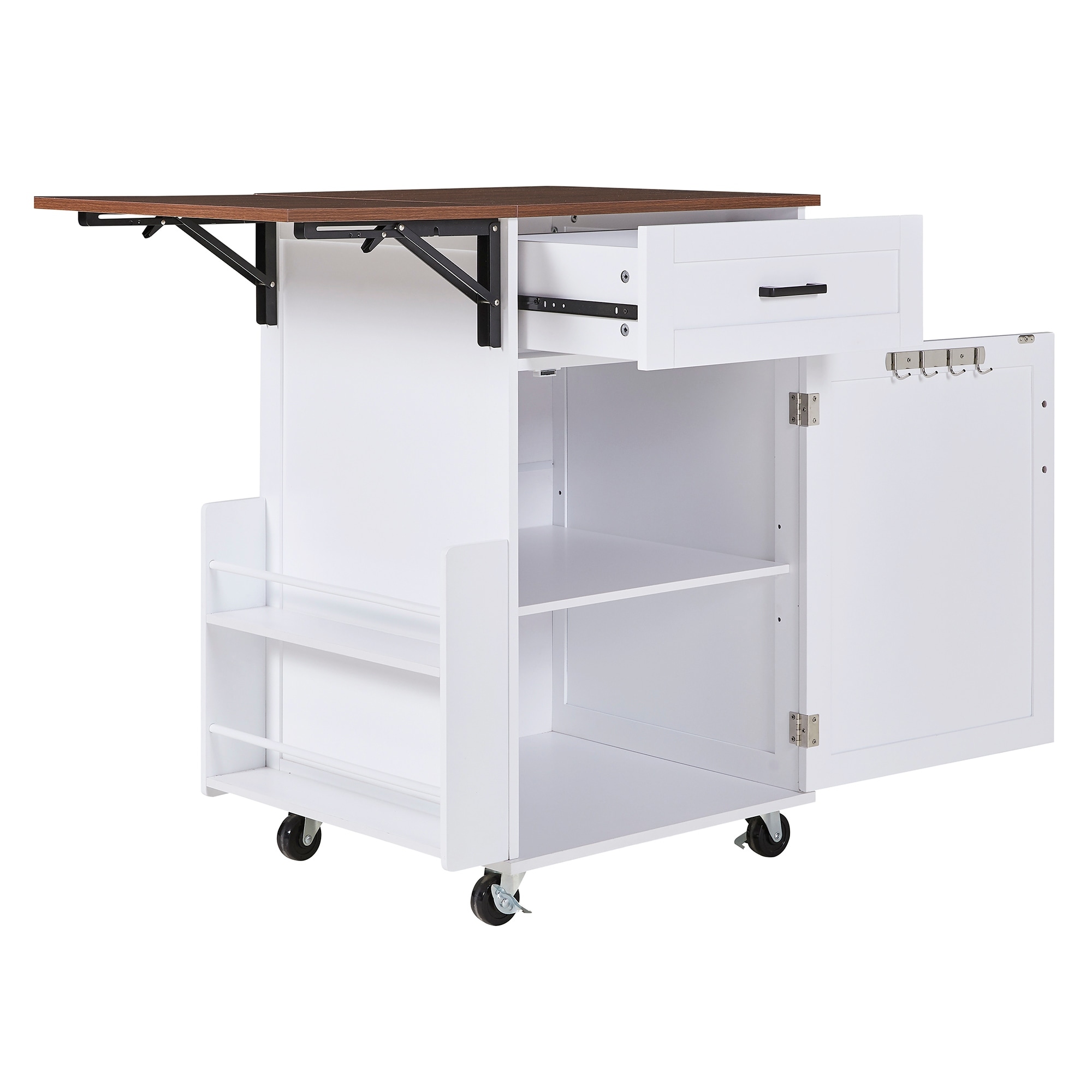 Farmhouse Rolling Kitchen Island with Drop Leaf, Kitchen Storage Cart with Drawer, Open Side Rack and Towel Rack,