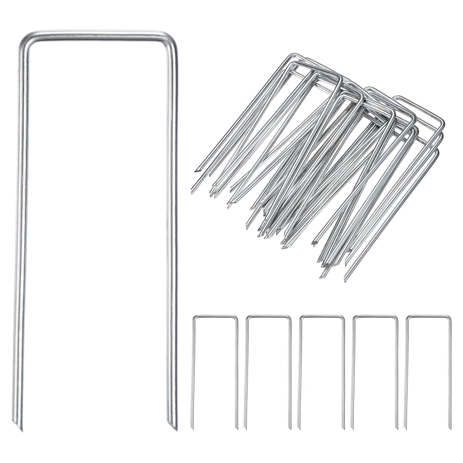 M METERXITY 100-Pack Landscape Staples, 4" 12 Gauge U-Shaped Garden Stakes Galvanized Anti-Rust Sod Staples Spikes Pins for Anchoring Landscaping