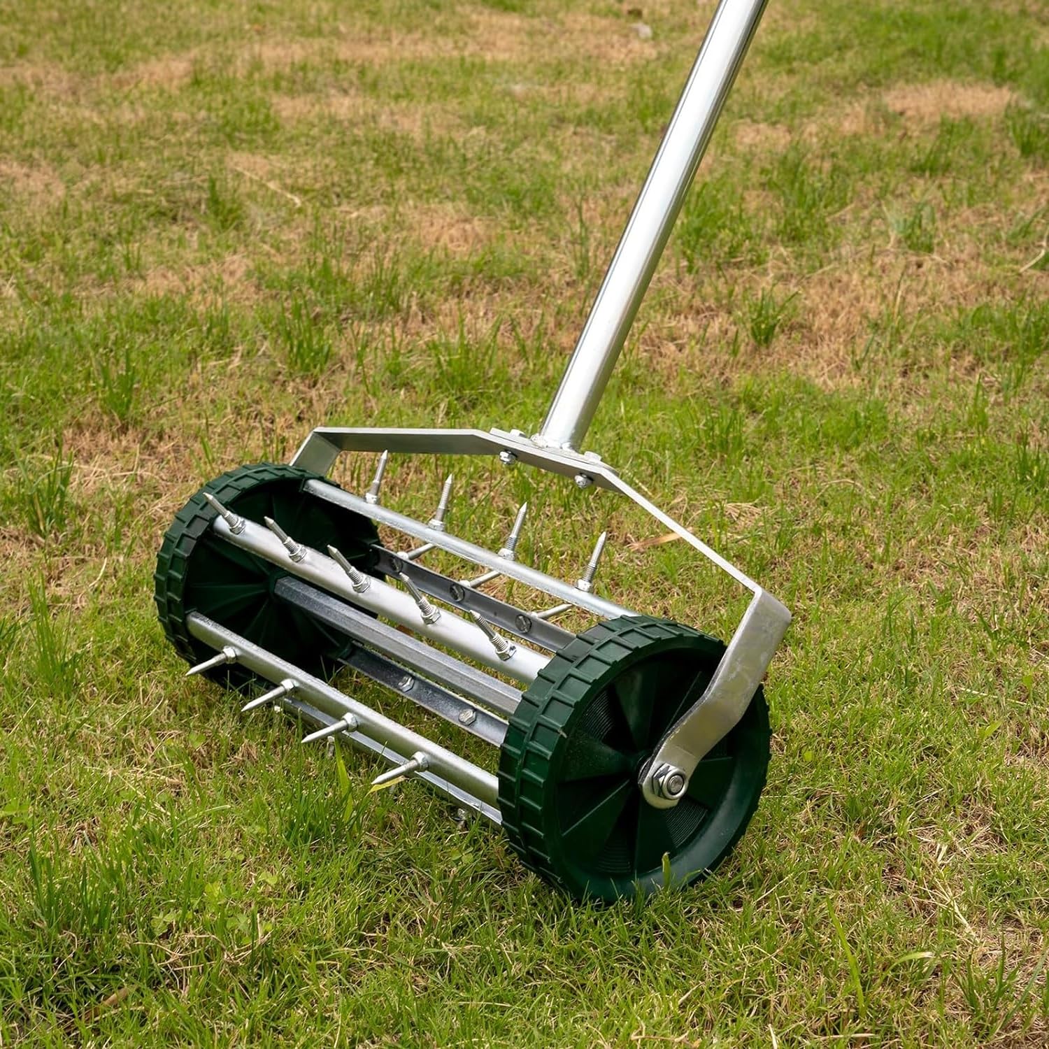 Lawn Aerator Push Spike Aerator, Push Lawn Aerator Heavy Duty Rolling Manual Yard Aerator Lawn Tool Manual Lawn Aeration Equipment for Lawn Yard Garden Grass Maintenance With the length of 1.4-inch rolling spikes, Your Aeration Work Will Become Much Easier. Rolling lawn aerator has less impact on th