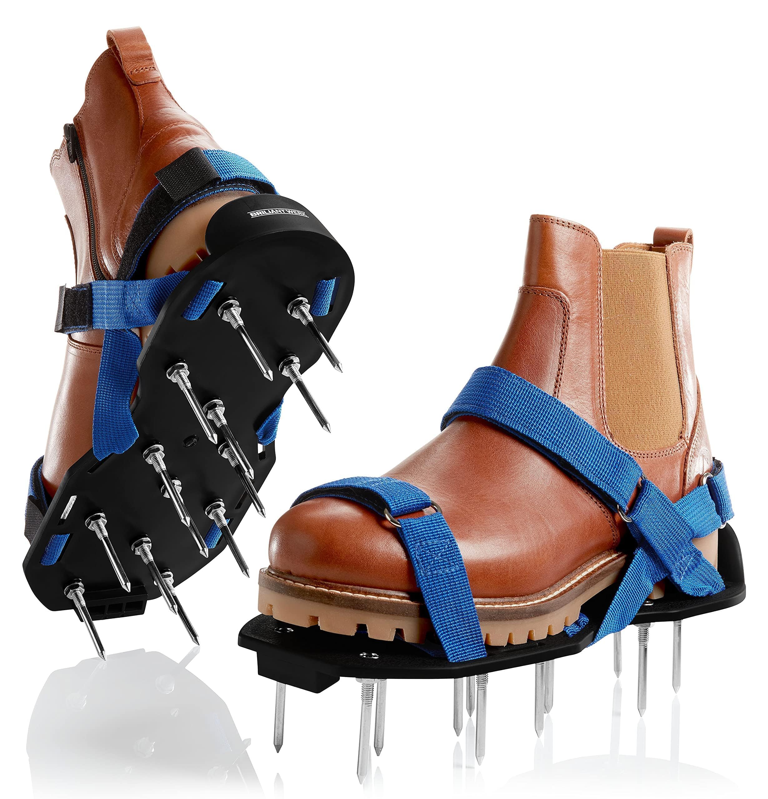 Briliantwerk Lawn Aerator with Adjustable Straps - for Lawn Aeration or as Screed Shoes - Lawn Aerator Shoes as Perfect Aerator Lawn Tool - incl. Two