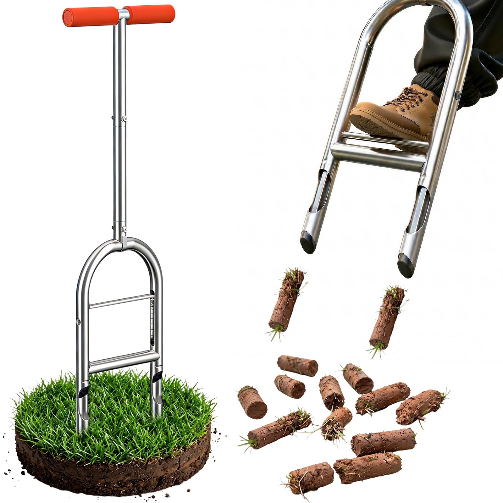 Manual Lawn Aerator Tool - Core Aerator with Step-to-Eject Technology for Never-Clogging Lawn Aeration, Heavy-Duty Steel Construction,Easy DIY Plug