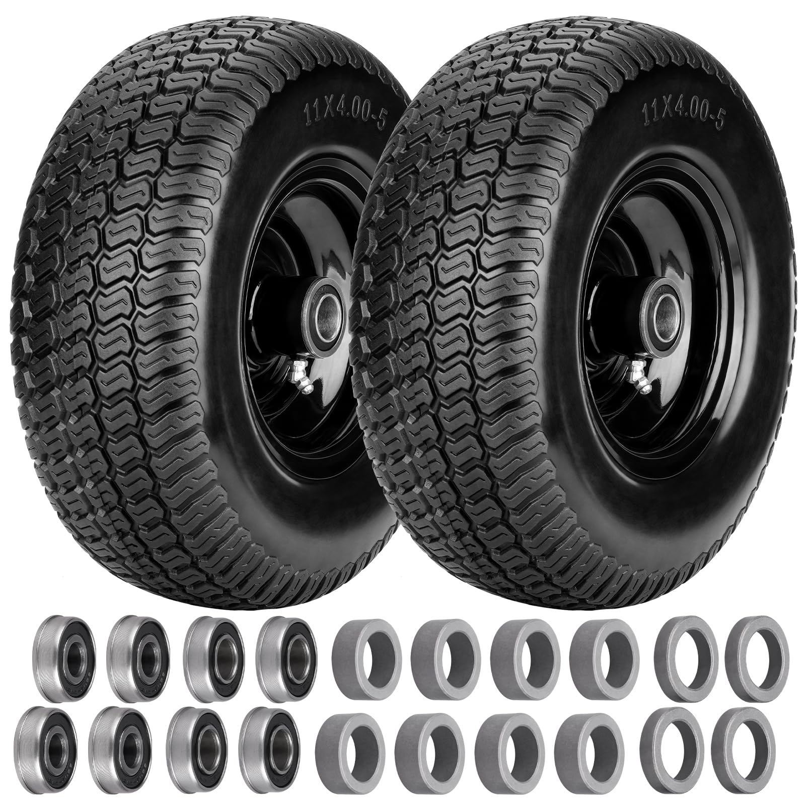 11x4.00-5 Flat Free Lawn Mower Tires, Zero Turn Mower Front Tires, 11x4-5 Solid Lawn Tractor Wheel with Rims, 3/4" or 5/8" & 1/2" Precision Bearings,