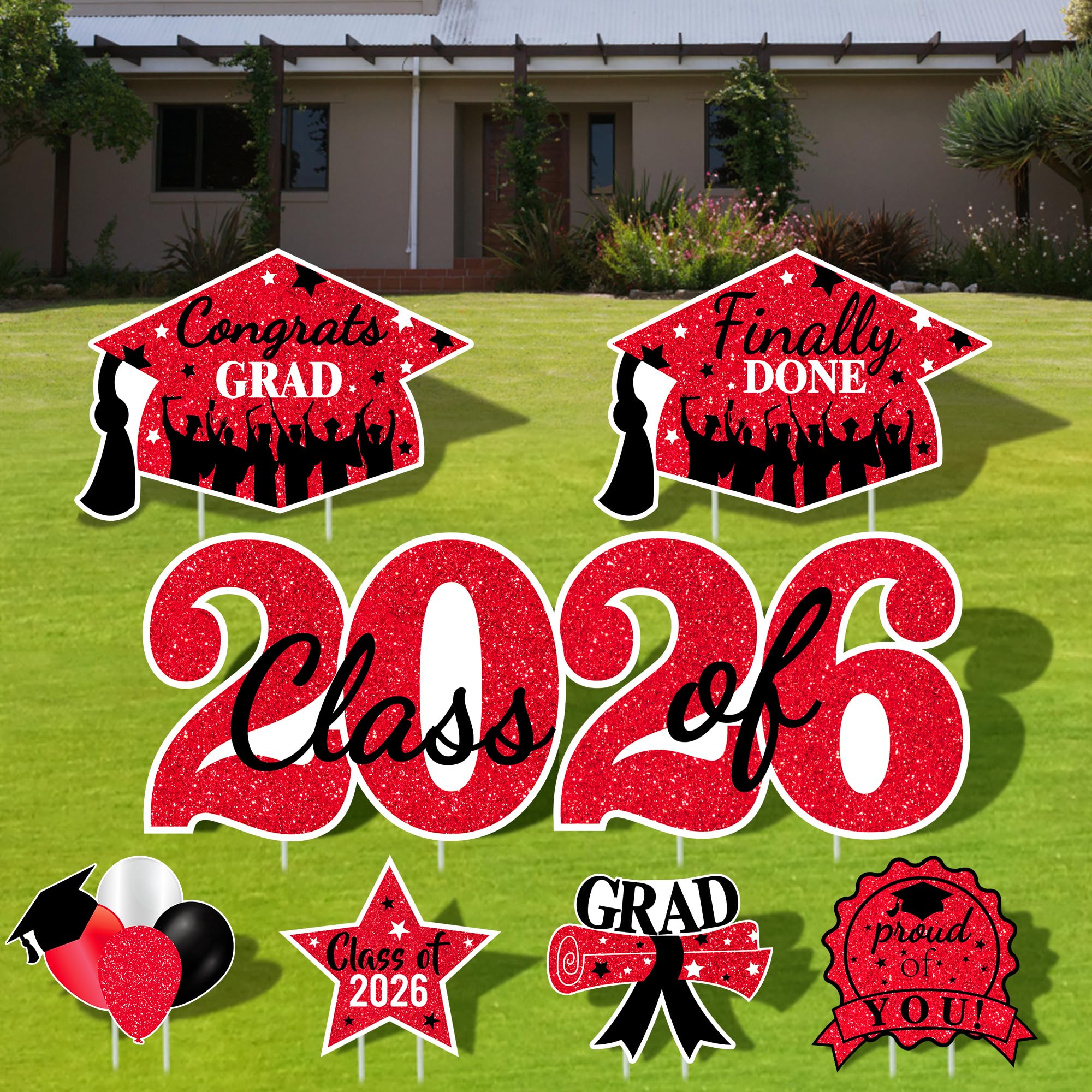 【2026 Graduation Yard Signs】- You will get 8 pieces yard sign parts with 16 plastic stakes. Sign patterns include ”20”,”26”,” Class of 2026”,“GRAD” “proud of you”, 2 pieces grad hats, star and balloon decorations, and 16 plastic stakes. It’s a bright and vivid yard sign set