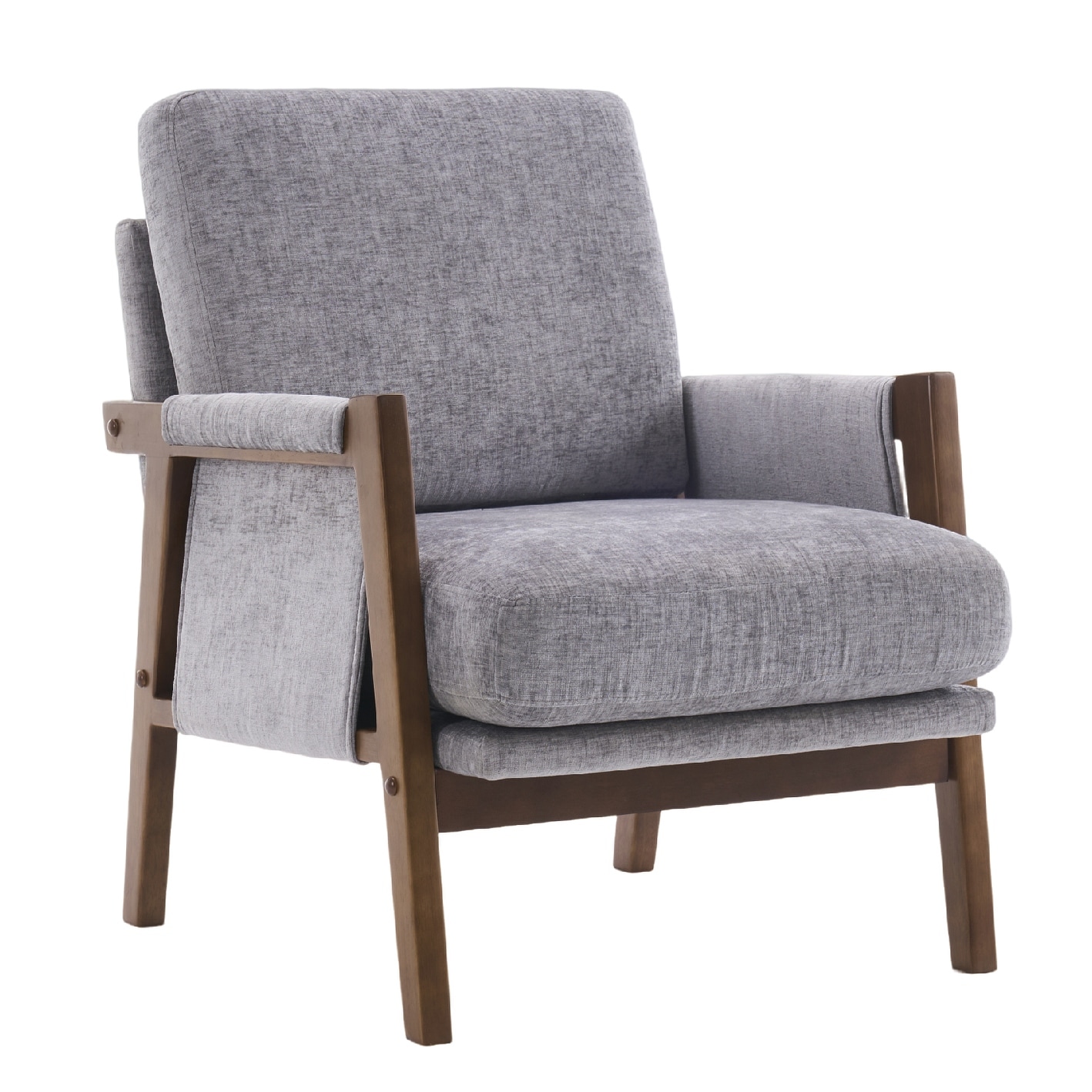 Mid-Century Modern Accent Chair, Arm Chair Living Room Chairs with Pillow Upholstered Reading Chair with Solid Wood Frame