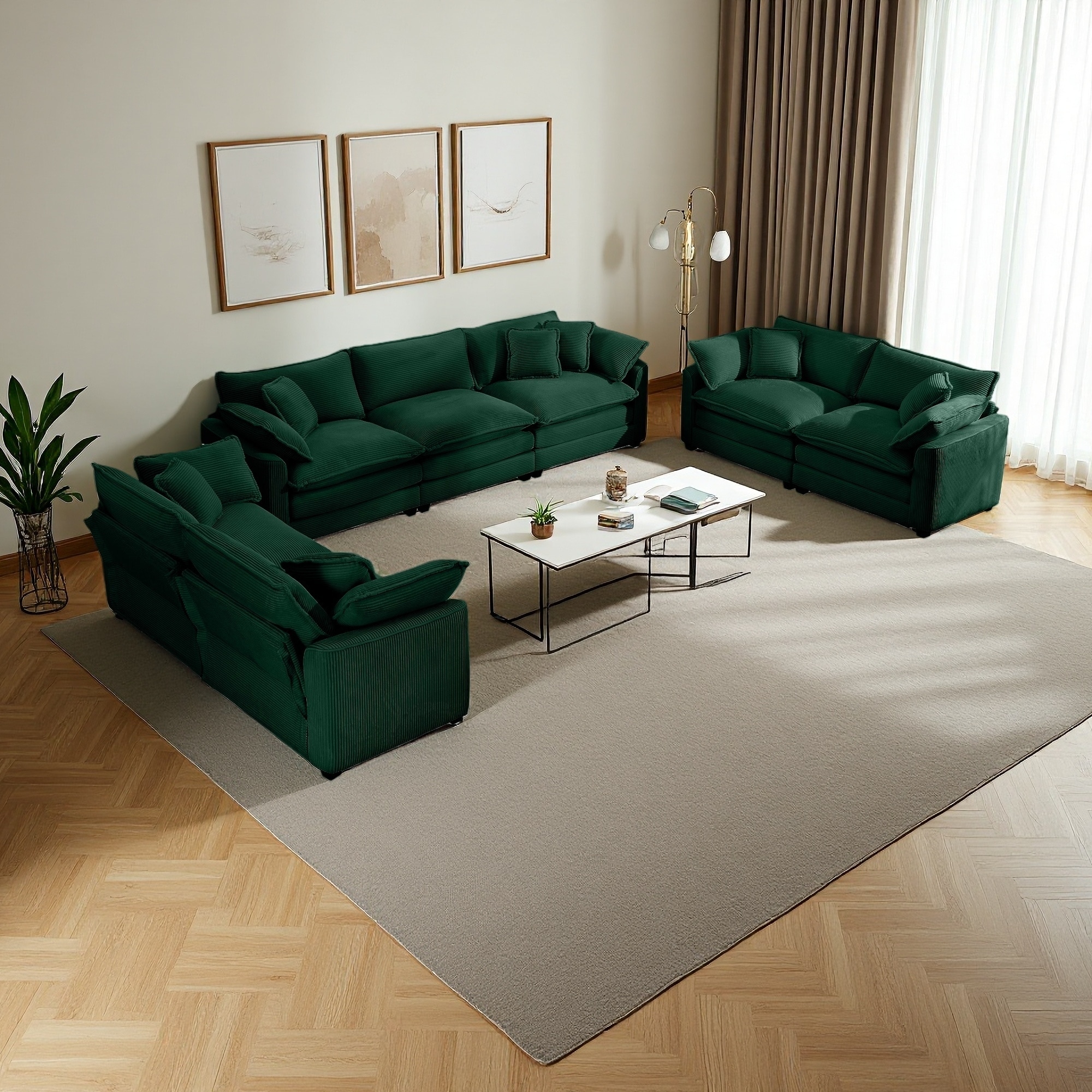 Corduroy Oversized Sectional Sofa Set with Deep Seat and Memory Foam Cushions (6-Seater)