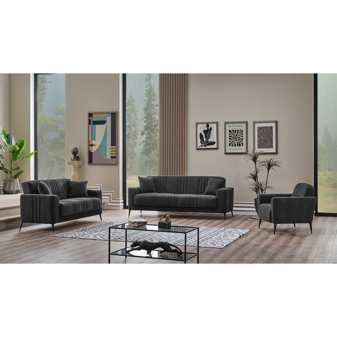 Bringing modern elegance to your living space with its refined design and soft lines, this sofa set offers both style and comfort. Its spacious and ergonomic seating provides superior comfort even during long periods of use.