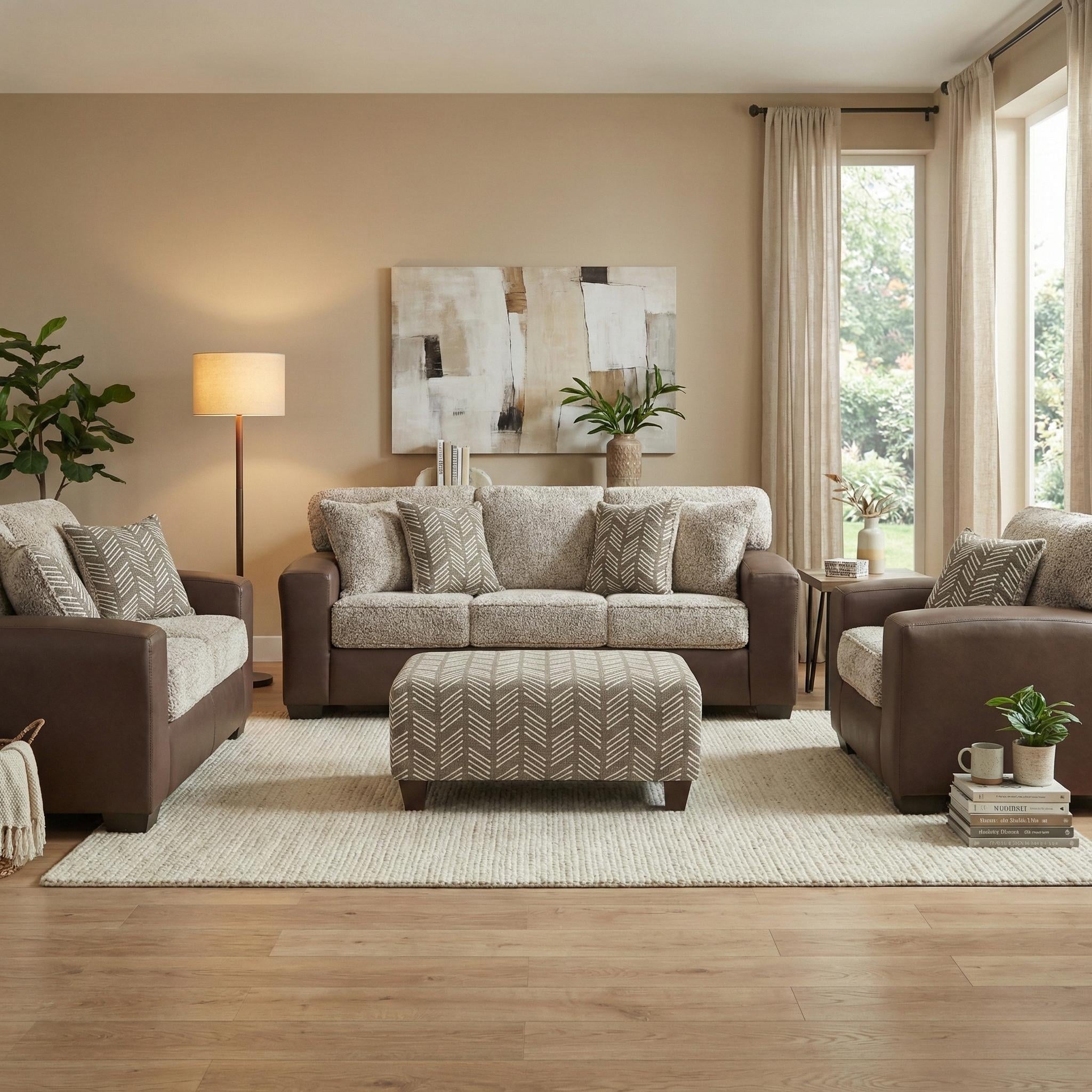 Introducing our modern transitional design living room set that offers tremendous aesthetic versatility, making it the perfect addition to any living room.