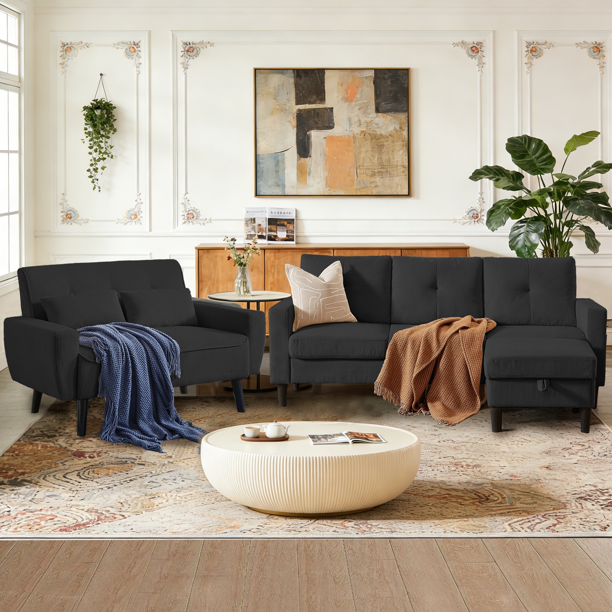Elevate your living room with this sleek black corduroy sofa set, designed to blend comfort, functionality, and modern style. The soft, ribbed corduroy fabric is gentle on the skin and breathable, making it perfect for year-round relaxation.