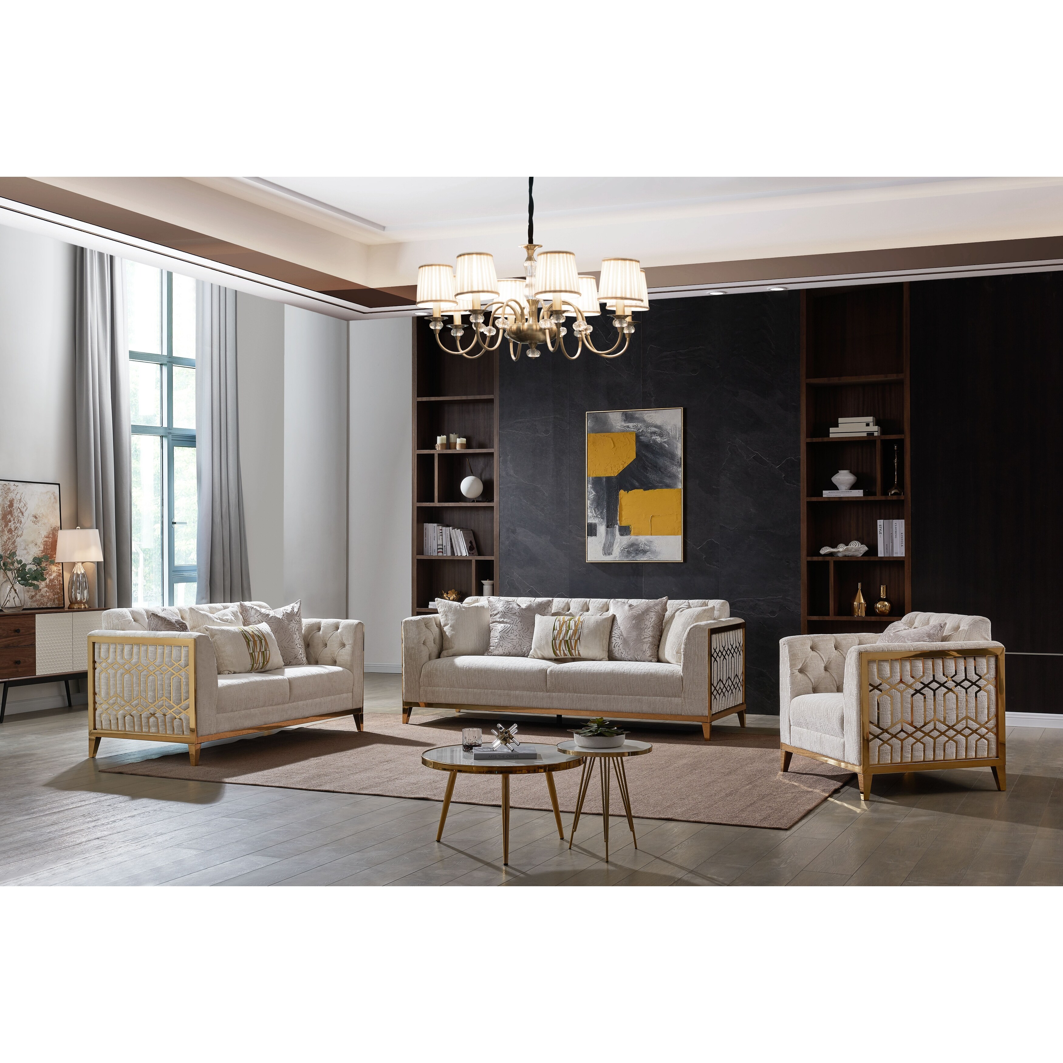 Stella Modern Living Room Set with Gold Accents