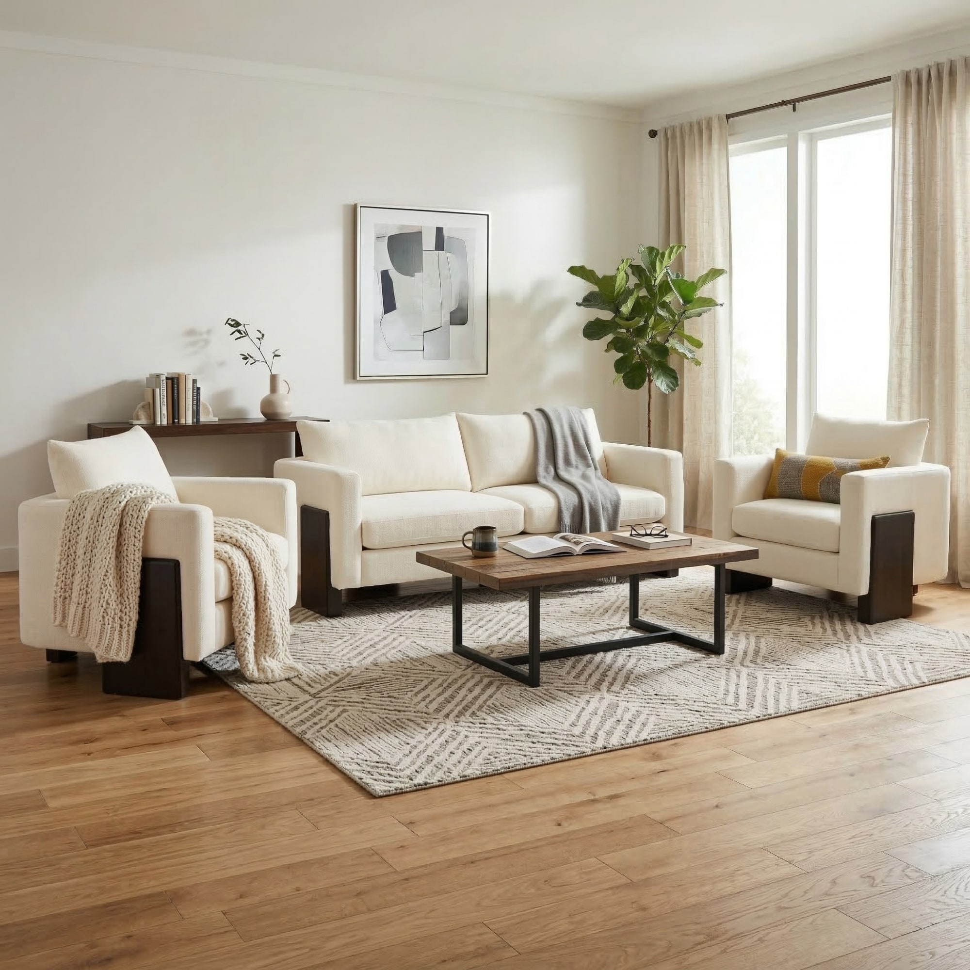 Christopher Knight Home - American Modern 3-Seater Upholstered Sofa and 2 Accent Chairs Set with Rubberwood Legs