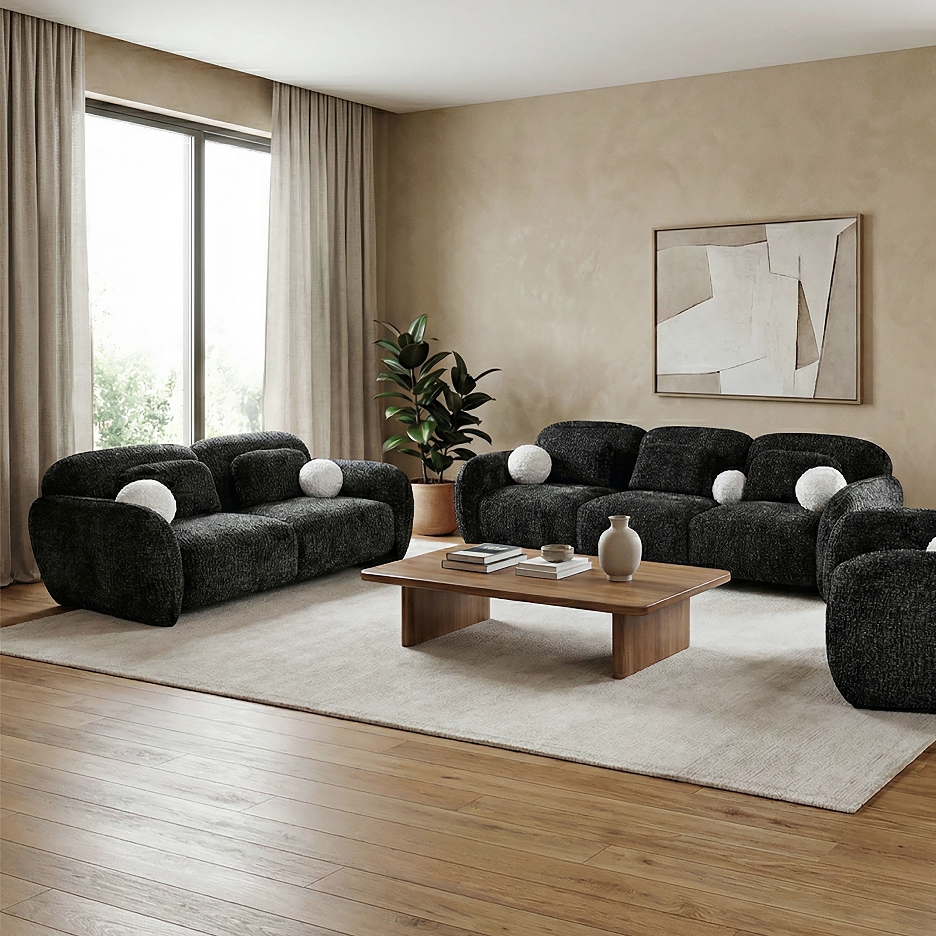 Make a bold yet inviting statement with this oversized chenille 2-piece sofa set, designed to bring sculptural comfort into modern living spaces.