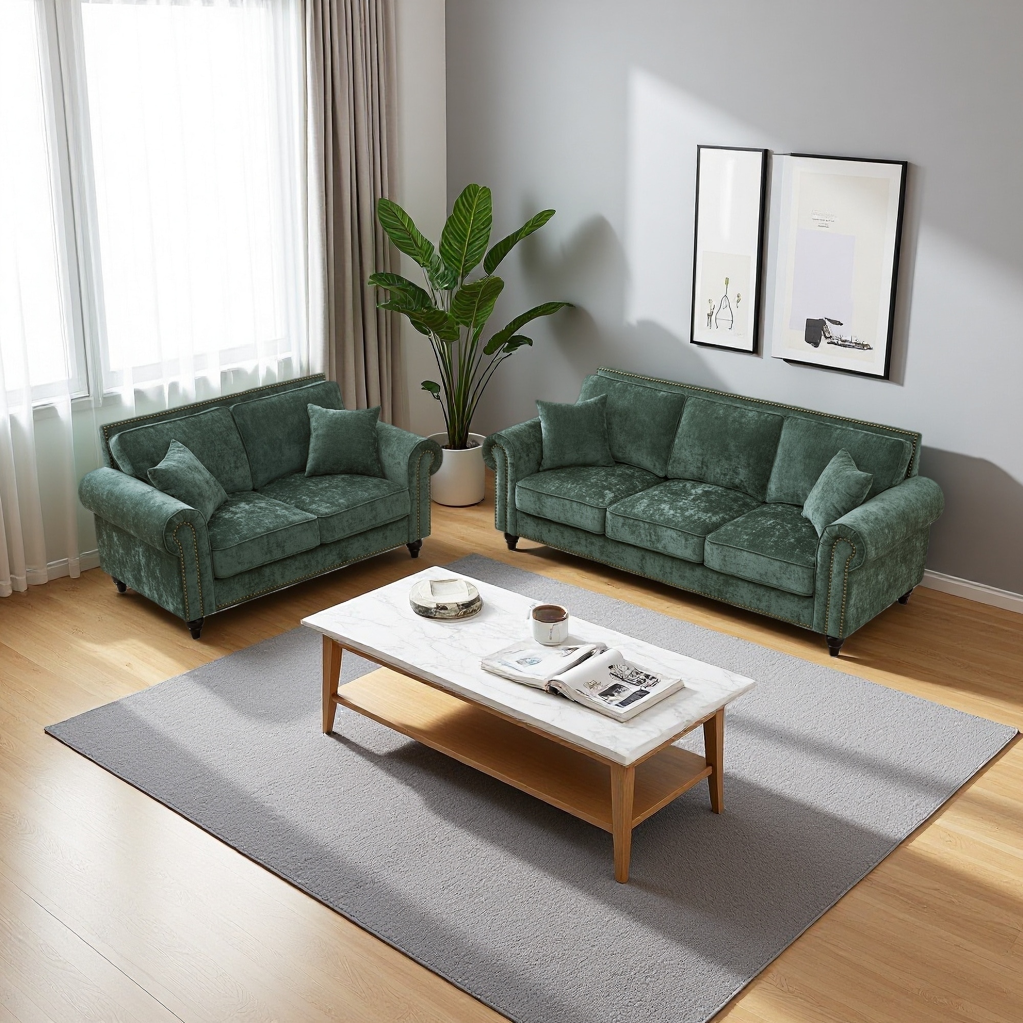 Elevate your living space with this stylish 2-piece seating set, featuring one loveseat and one sofa for a complete arrangement.