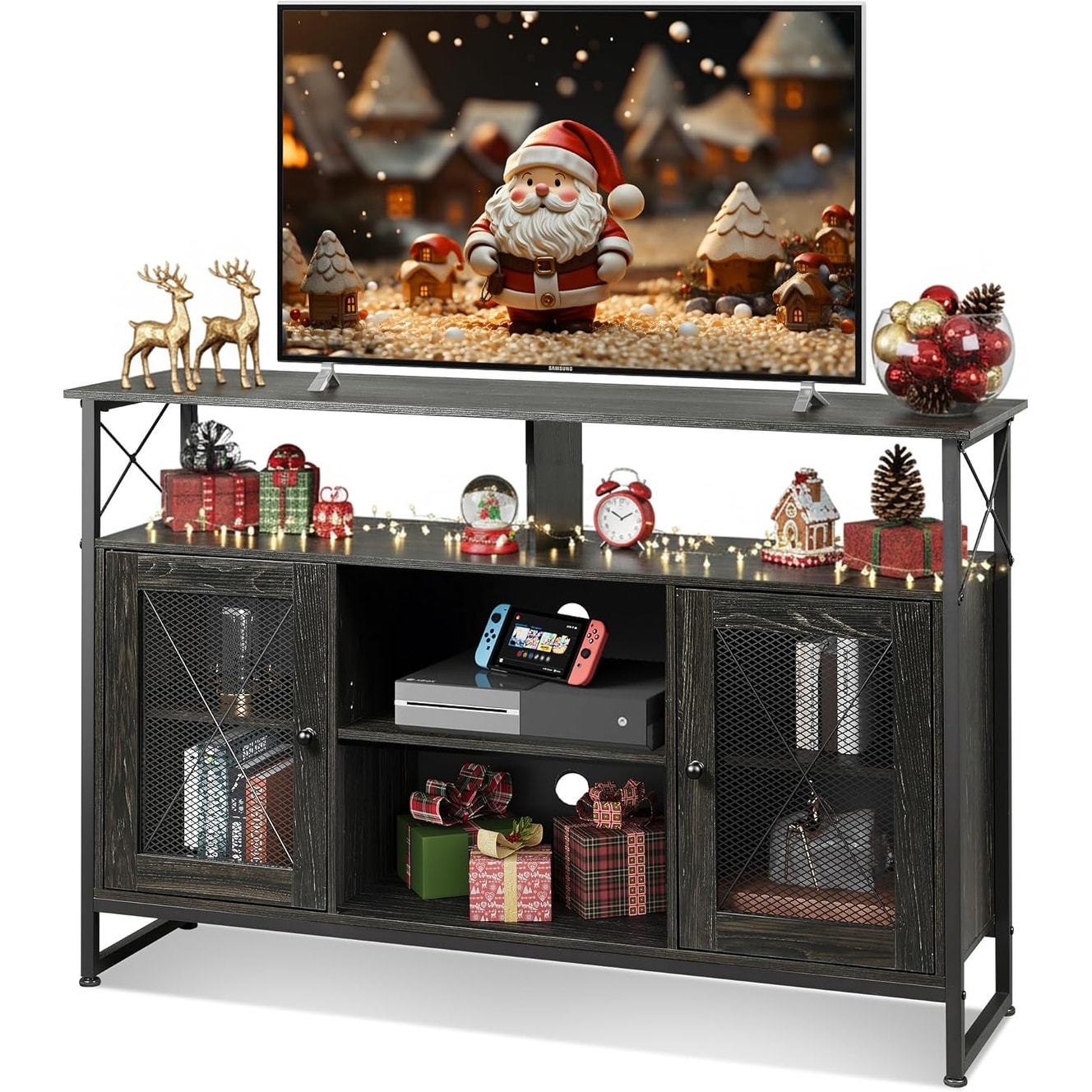 TV Stand for 55 inch, Tall Entertainment Center with Storage, Farmhouse Industrial Design, Charcoal Black