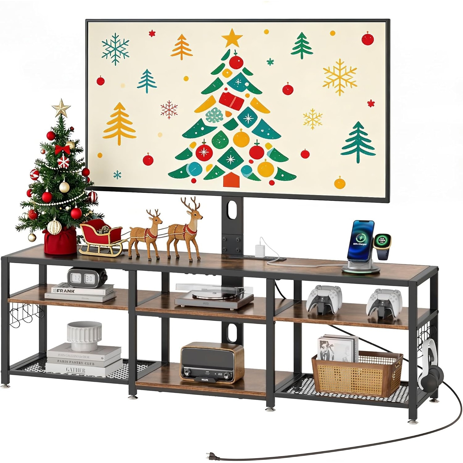 TV Stand with Power Outlet: The charging station has 2AC, 2USB, 1Type-C, it can can meet the power requirements of the vast majority of electronic devices.