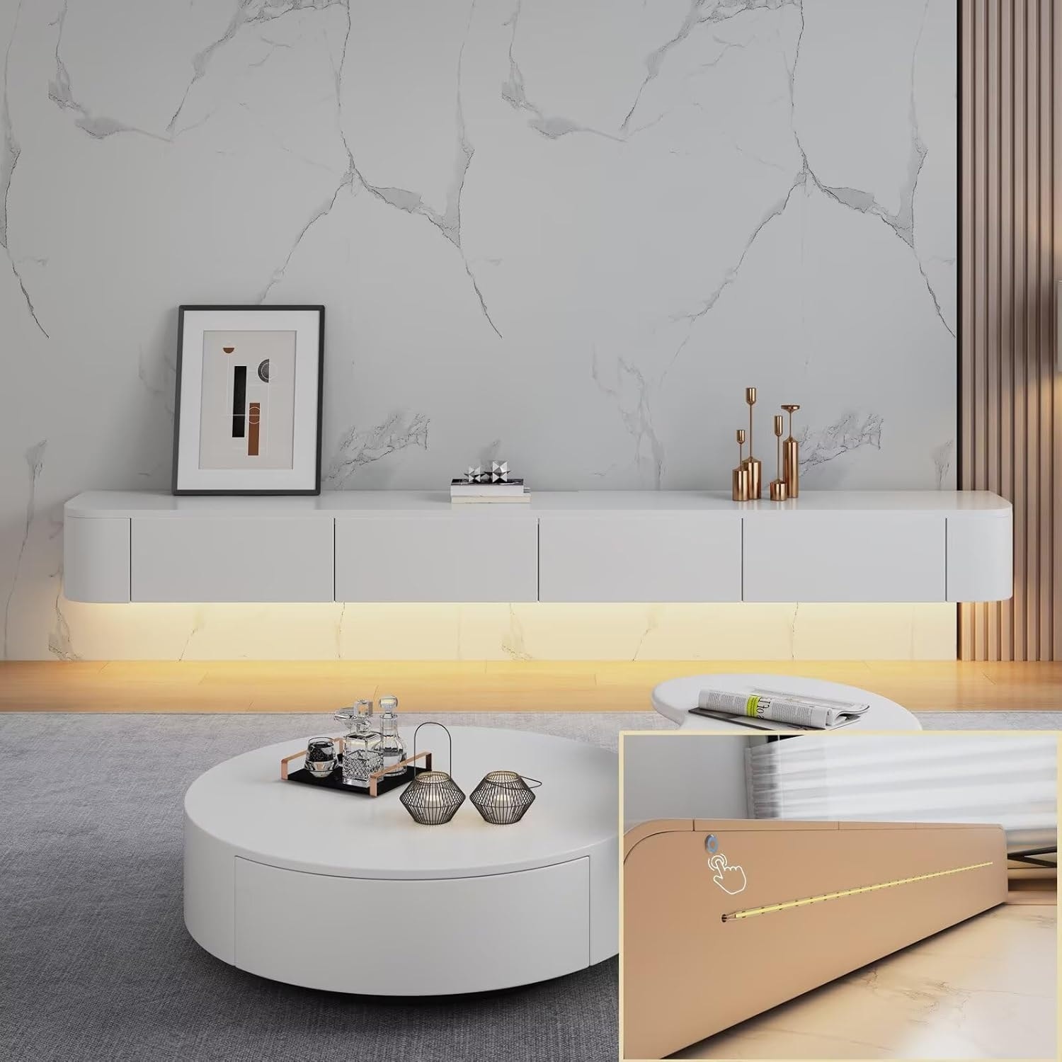 Floating TV Stand for 65-95+ Inch, LED Lit Media Console with Storage Shelf