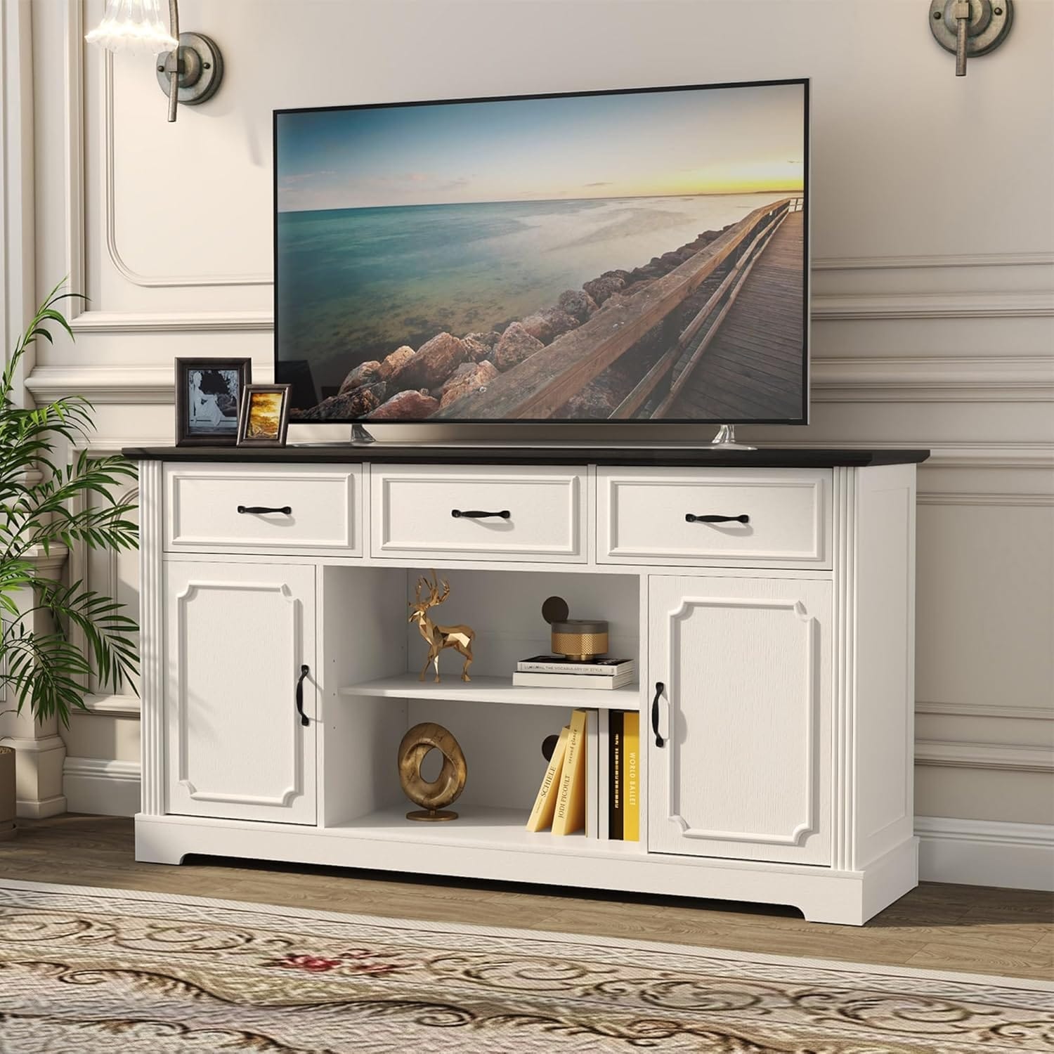 Entertainment Center with Large Storage - With 3 spacious drawers, 2 cabinets and 3 open shelf, this entertainment center with storage offers plenty of room to store your gaming consoles, DVDs, remote controls, and other media essentials.