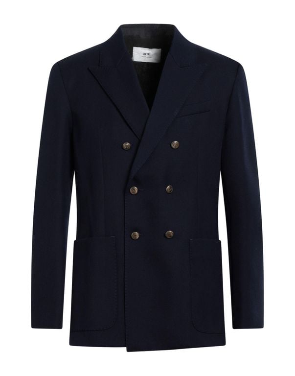 Men's AMI Blazer - Blue - Formal jackets Cool wool, no appliqués, solid colour, lapel collar, double-breasted, long sleeves, fully lined, button closing, multipockets, double-breasted jacket. 100% Virgin Wool.