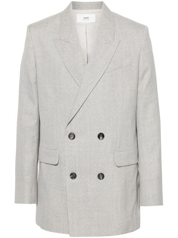 Men's AMI Double-Breasted Blazer - Gray - Formal jackets Grey virgin wool peak lapels double-breasted button fastening shoulder pads long sleeves buttoned cuffs chest welt pocket front flap pockets two internal jetted pockets side slits straight hem...