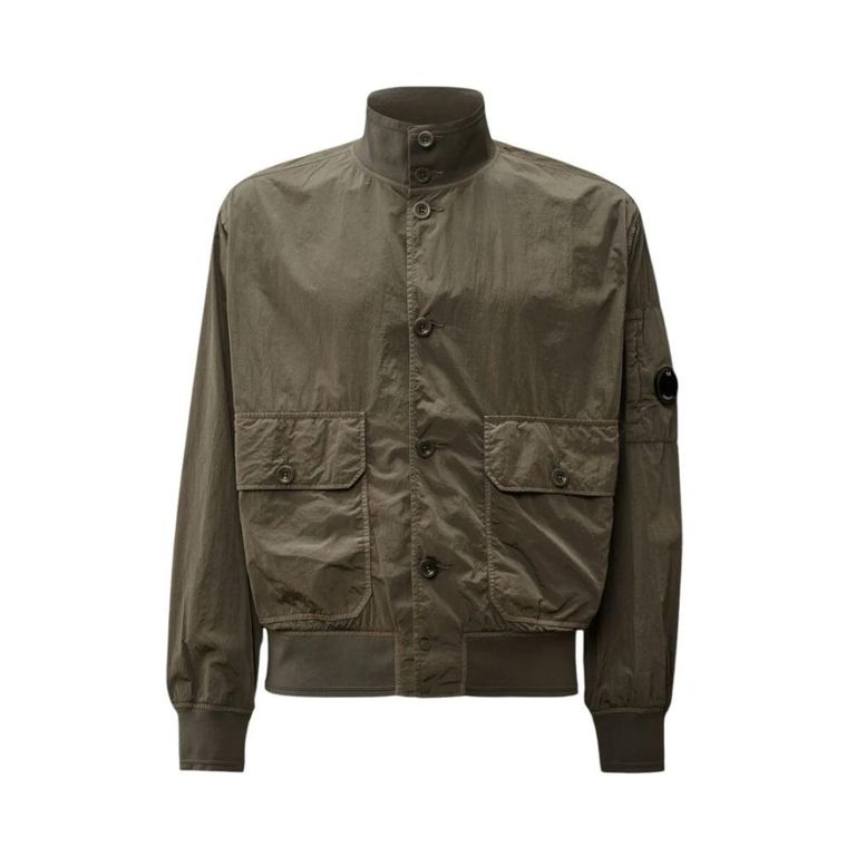Men's C P Company Light Jackets - Green - Casual jackets The Shiny Nylon Jacket with Button Details by C.p. Company offers a sleek, weather-resistant design ideal for modern urban wear. Its standout features include a distinctive buttoned collar and...