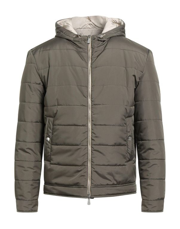 Men's Eleventy Military Puffer Polyester - Gray - Casual jackets Down jacket, shell, quilted, solid color, no appliqués, hooded, long sleeves, snap-fastening cuffs, goose down interior, zipper fastening, multipockets, stretch, contains non-textile...