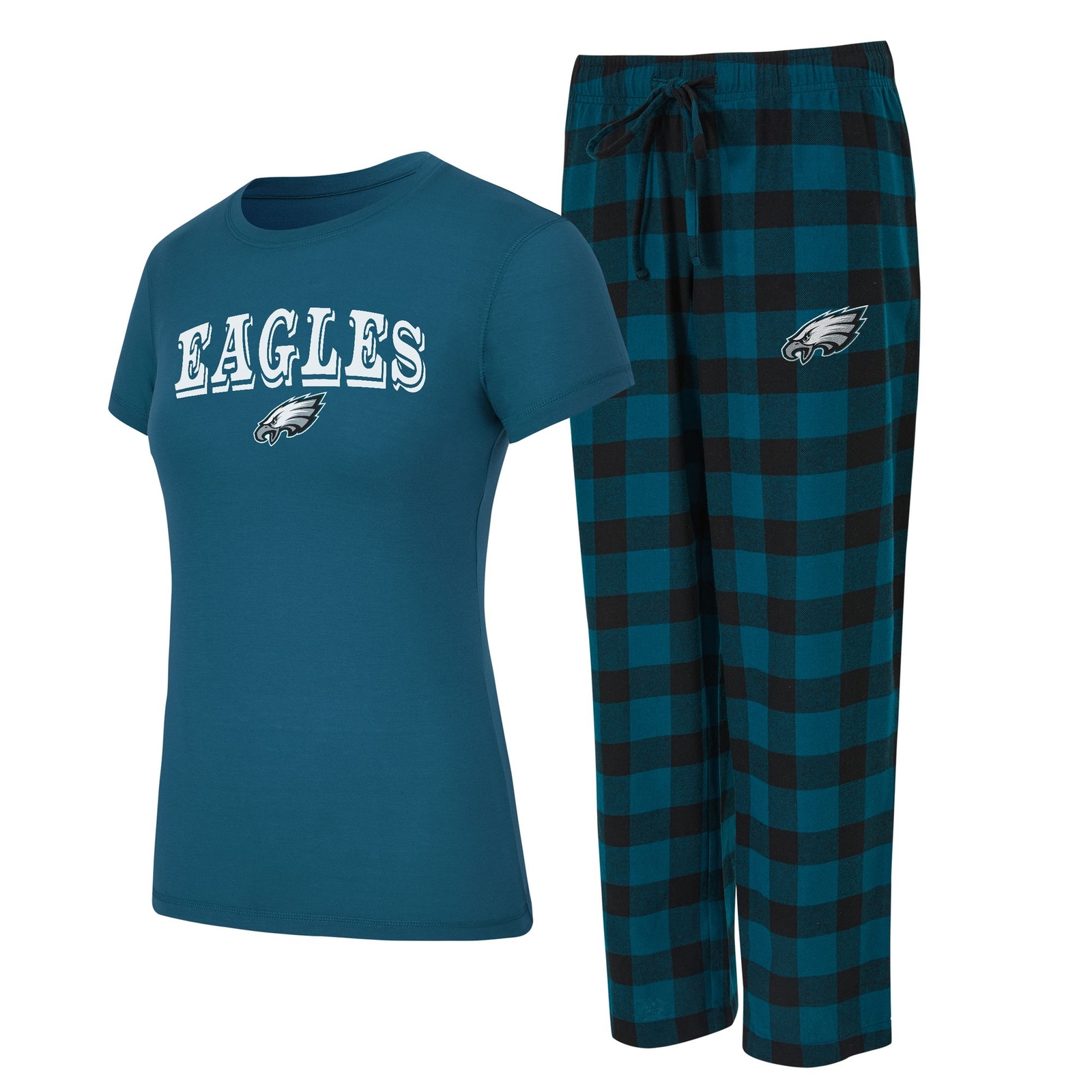 NFL Women's Avondale Short Sleeve Top and Pant Set (Size XXL) Philadelphia Eagles/Midnight Green/Black, Cotton,Polyester,Rayon