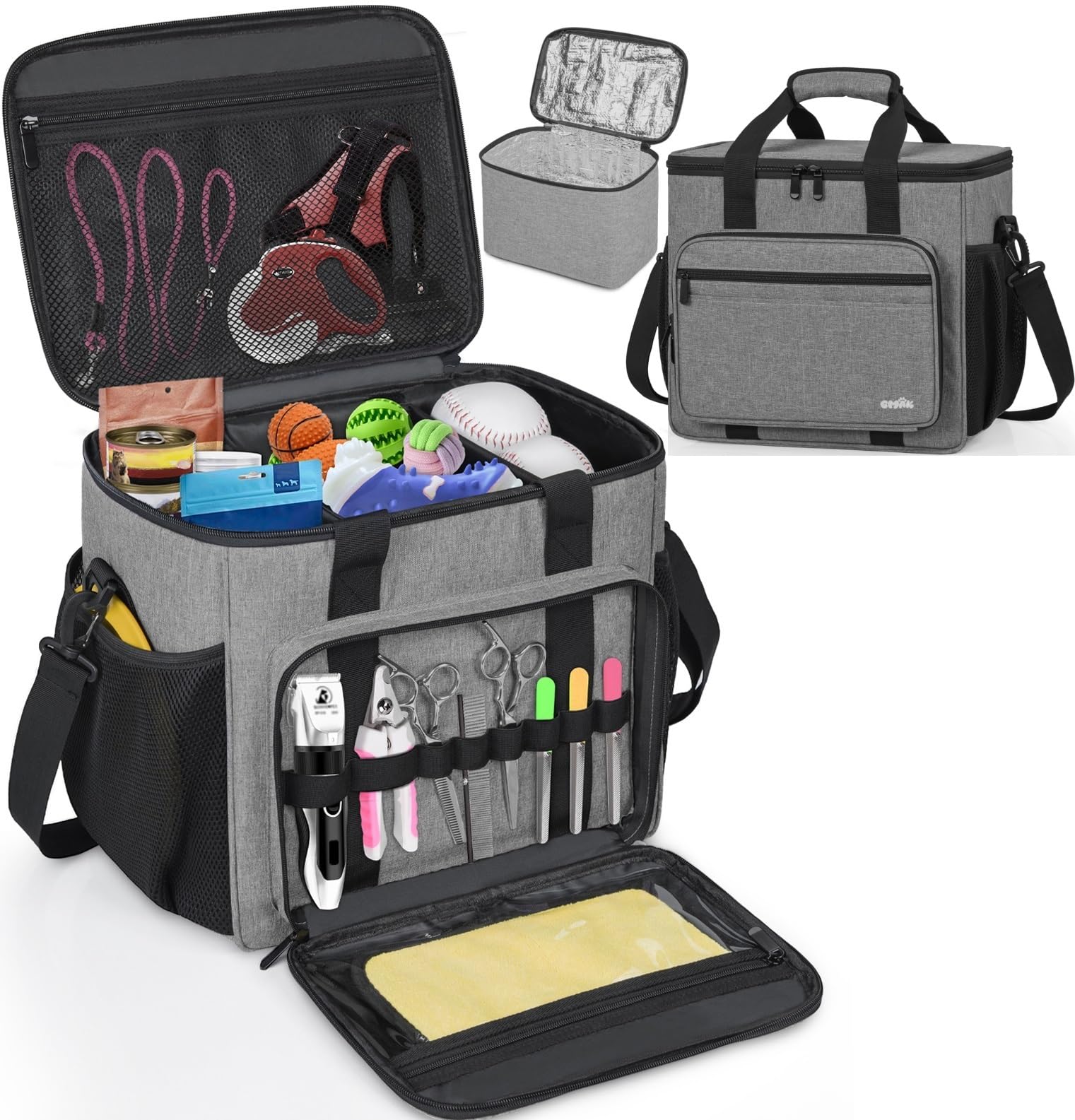 GMAK Pet Grooming Bag, Dog Grooming Tote Bags Supplies Organizer Case Pets Tools Organizer Tote for Dog Cat Grooming Tool Kit and Accessories, Grey(