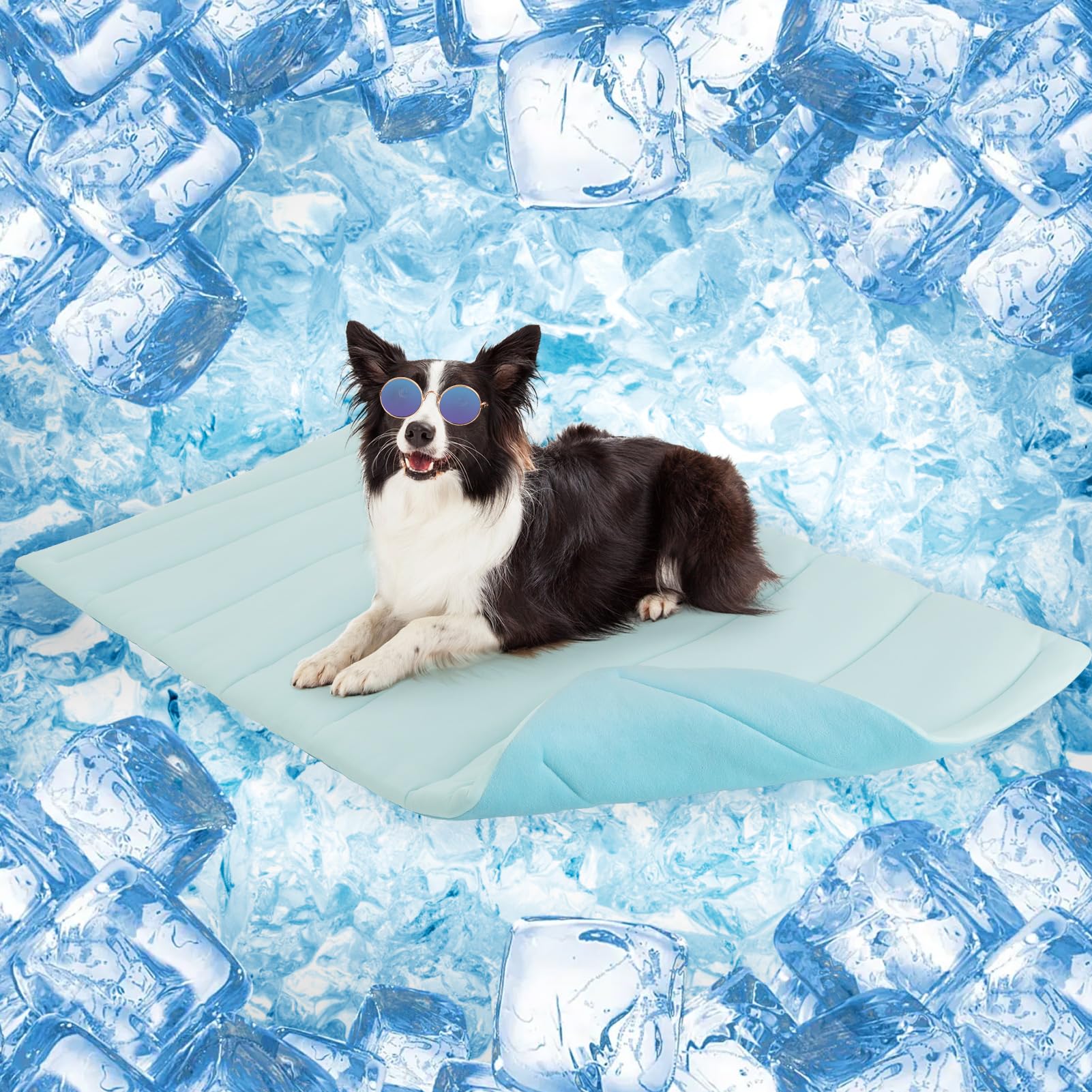 ❄️ARC-CHILL SELF COOLING PET PAD: The surface of the pet summer cooling mat is made of upgraded self-cooling fabric, Arc-chill cool technology, which provides excellent cooling without any water, electricity or refrigeration equipment. For cooler temperatures, use with an air conditioner or fan.