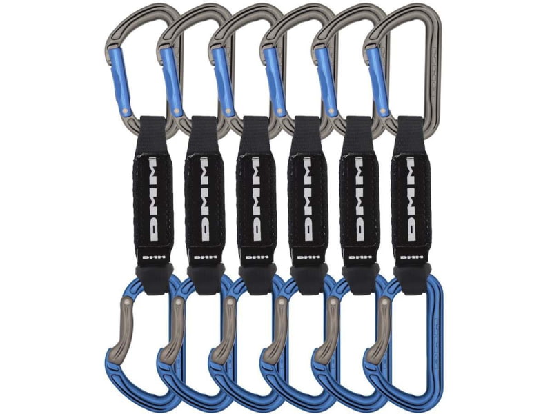 DMM Shadow Quickdraw Pack of 7 Titanium/Blue 12cm A306BL-12P6. The DMM Quickdraw Shadow Pack will take your sport climbing to the next level with engineering that takes every detail of speed and safety into account. The 10kN open gate rating gives...