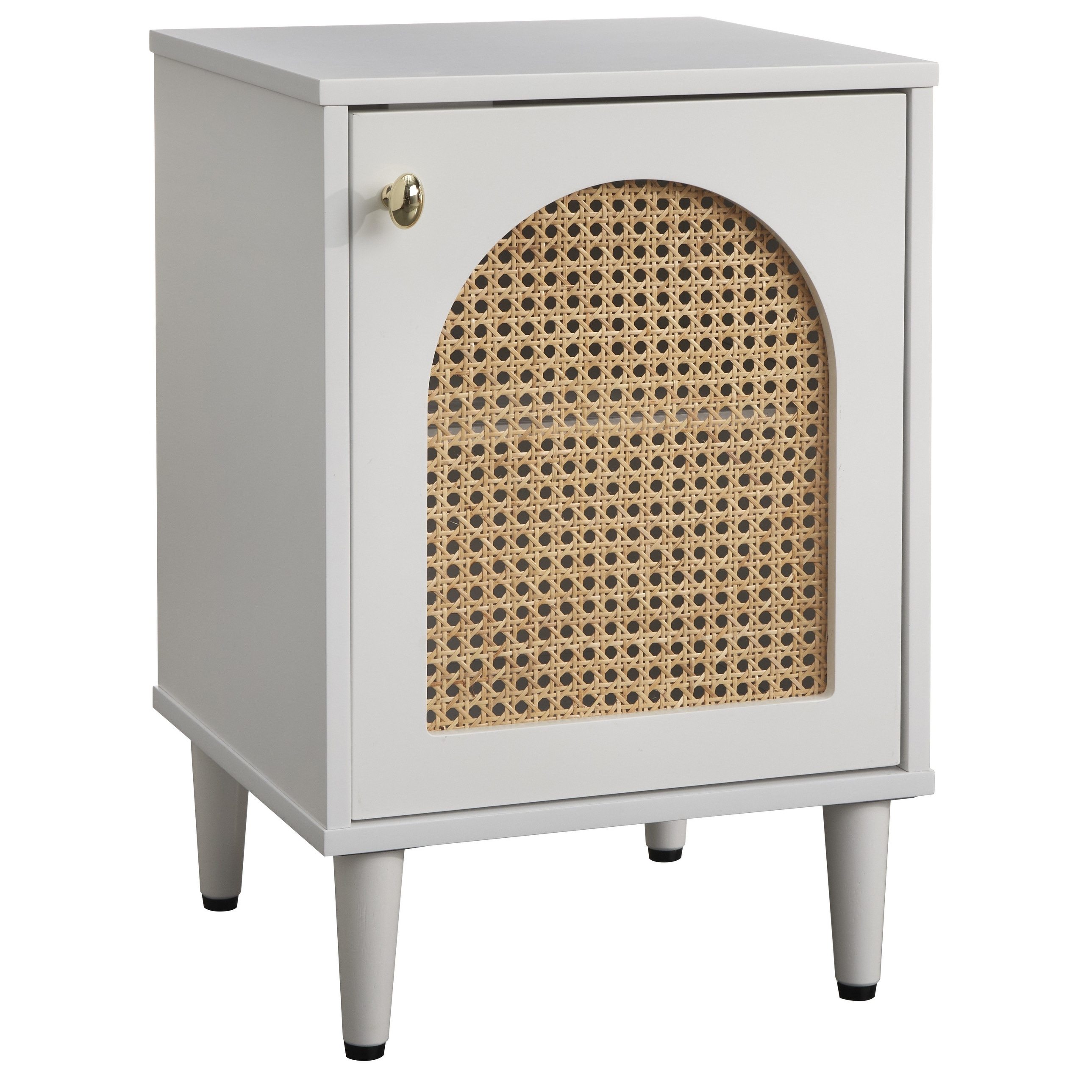 The Lifestorey Taylor Nightstand creates a sophisticated bedroom accent while offering bedside storage. Unmistakably midcentury, the defining feature is the arch-shaped natural cane door face, which adds architectural detail and a two-tone look.