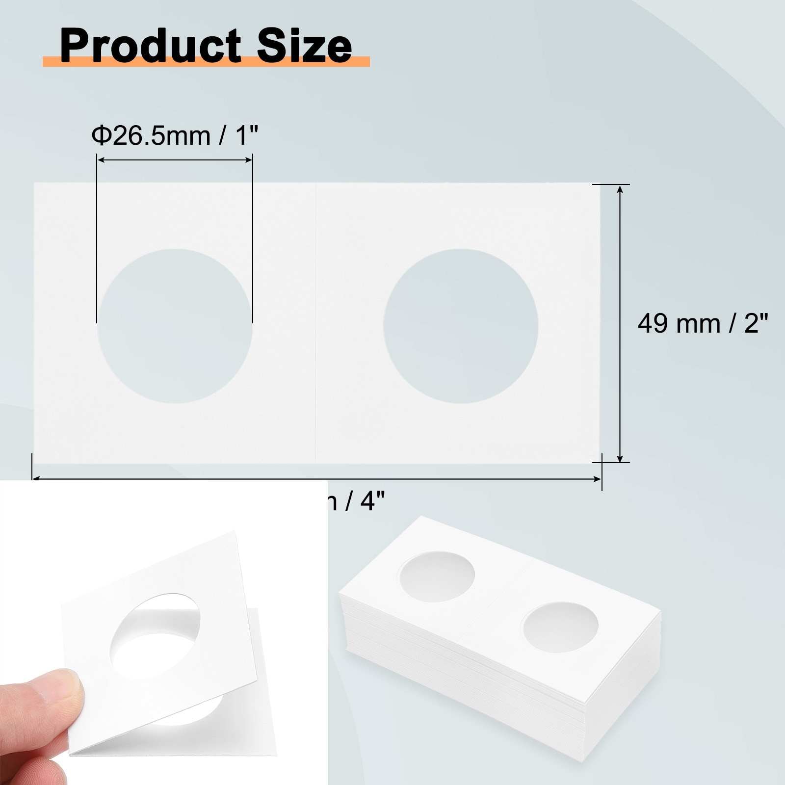 2"x 2" 100 Pack Cardboard Coin Holder for 17.5mm/ 0.7" Coin Collection - White
