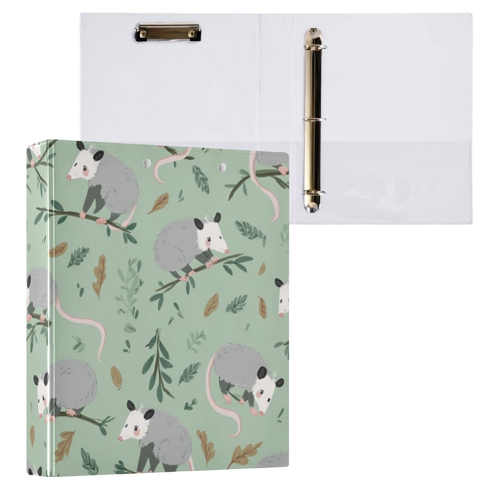 IHCVHQX 3 Ring Binder Cute Opossums and Leaves Binders 1.5 Inch Round Rings Binder Organizer for Letter Size Paper Hardcover Binder for Office Home