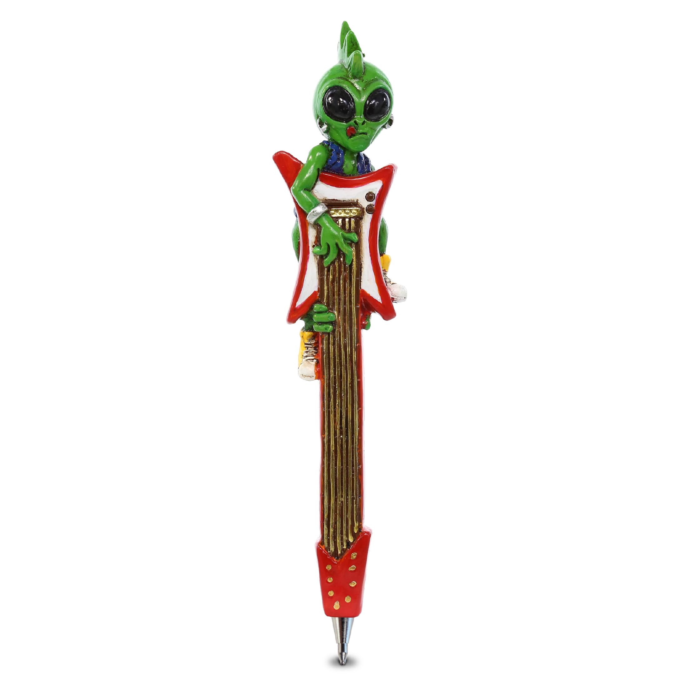 THE ALIEN PEN COMES WITH UNIQUE DESIGN YOU WILL LOVE - Unleash your inner space lover with Planet Pens Punk Alien funny pen. Unique pen features a alien design that resembles a punk alien on top of an electric guitar figure, featuring intricate details. Writing decorations and desk accessories for m