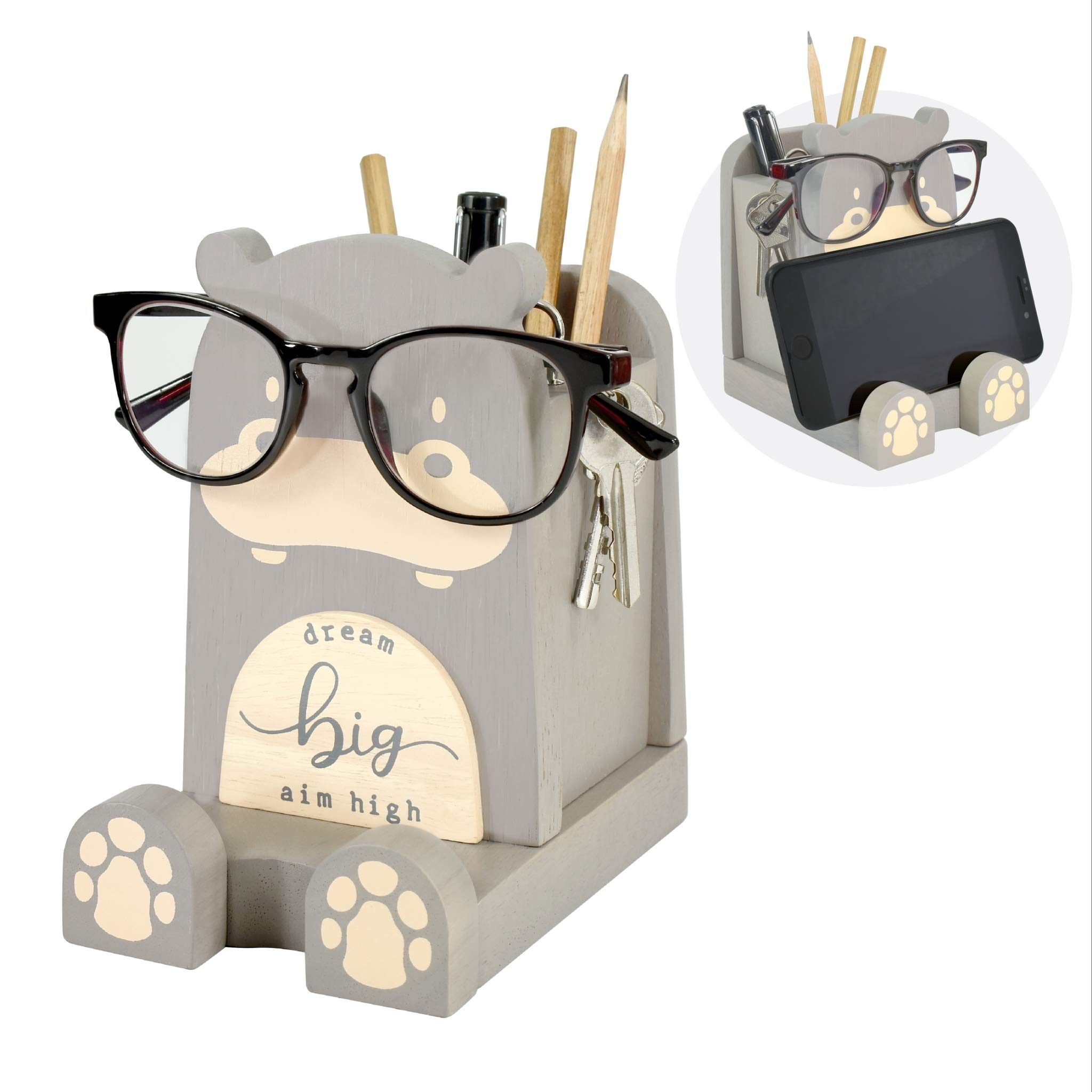 Eco Solid Wood : Super Cute Animal Shaped Eyeglass holder Pencil / Pen Holder Carving Brush Scissor Holder Desk Organizer with Cell Phone Stand Decoration for Office Desk Home Decorative Creative decoration for living room, kids’ room, study, bedroom, office, dorm, party, etc. Creative gift for fr
